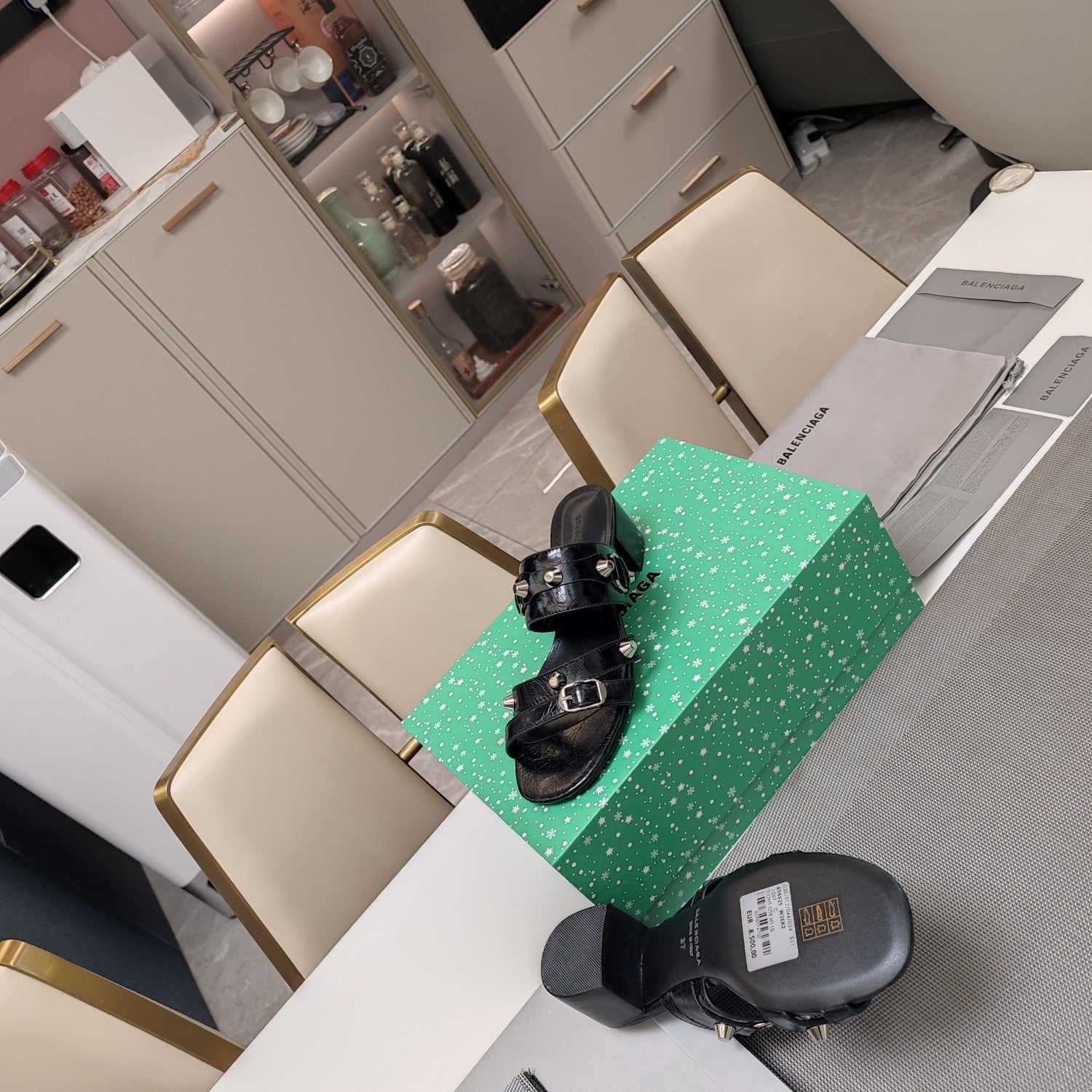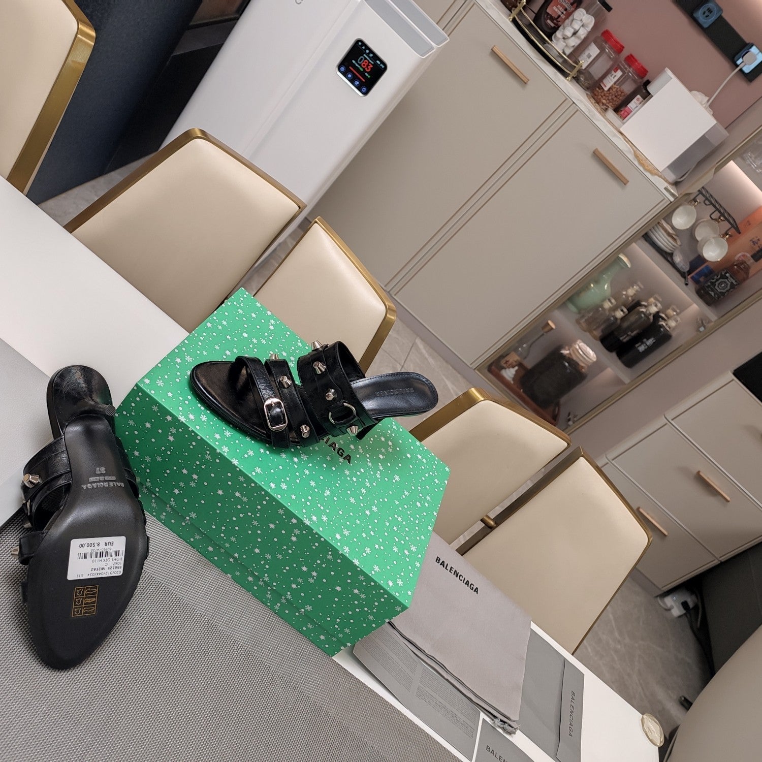 STRAPPY MEDIUM HEELED SANDALS IN BLACK STUDDED WAX-OIL SHEEPSKIN