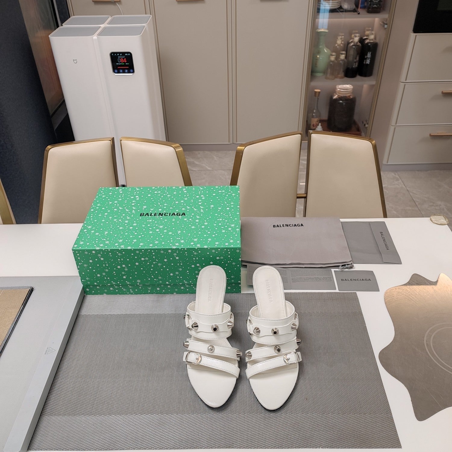 STRAPPY MEDIUM HEELED SANDALS IN WHITE STUDDED WAX-OIL SHEEPSKIN