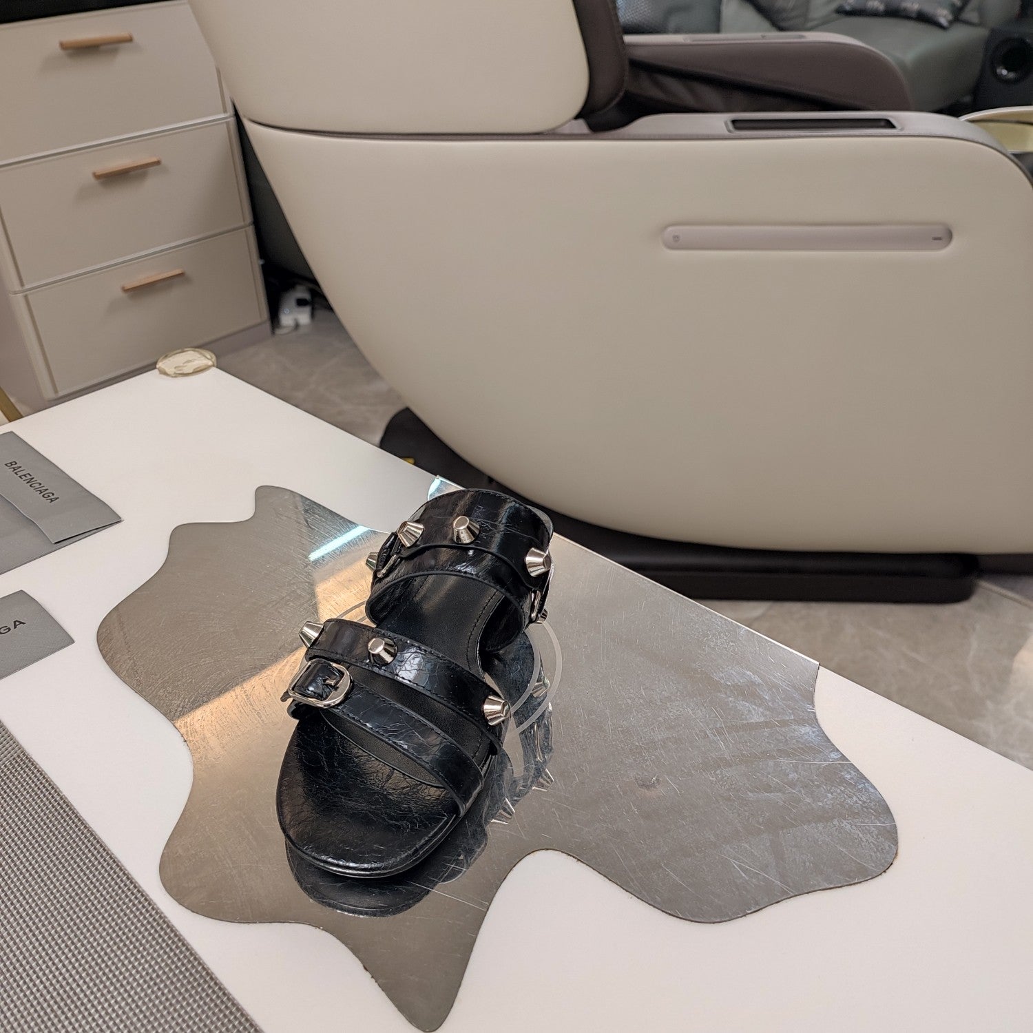STRAPPY FLAT SANDALS IN BLACK STUDDED WAX-OIL SHEEPSKIN