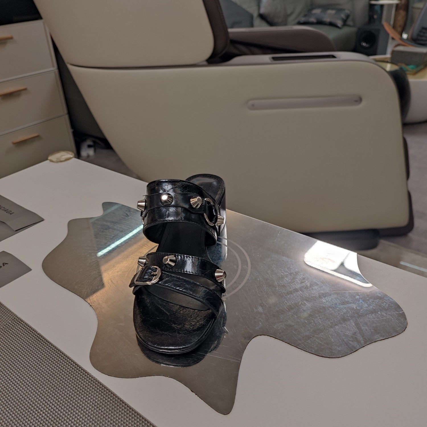 STRAPPY MEDIUM HEELED SANDALS IN SILVER STUDDED WAX-OIL SHEEPSKIN