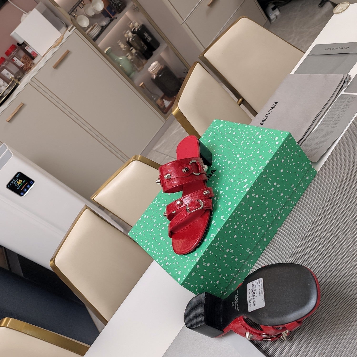 STRAPPY FLAT SANDALS IN RED STUDDED WAX-OIL SHEEPSKIN