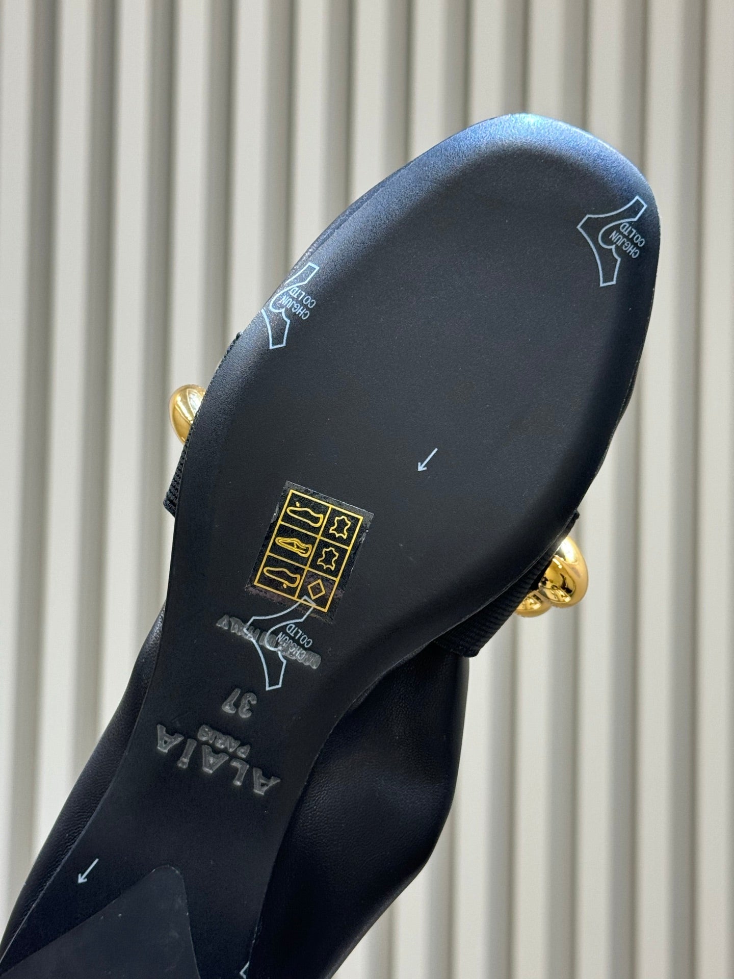 Alaia 26 Ballet Flats Black Lambskin Gold Chain 621730