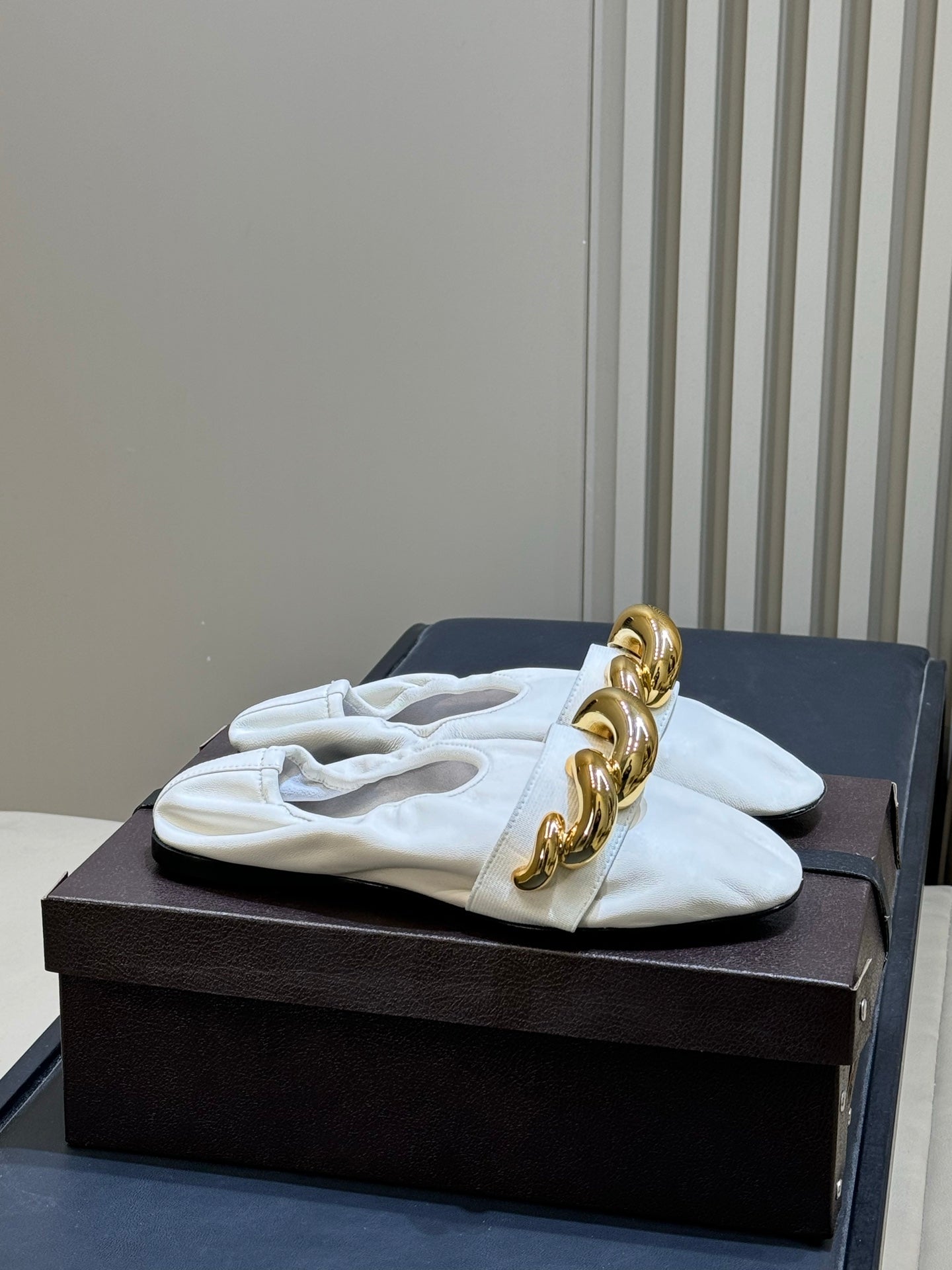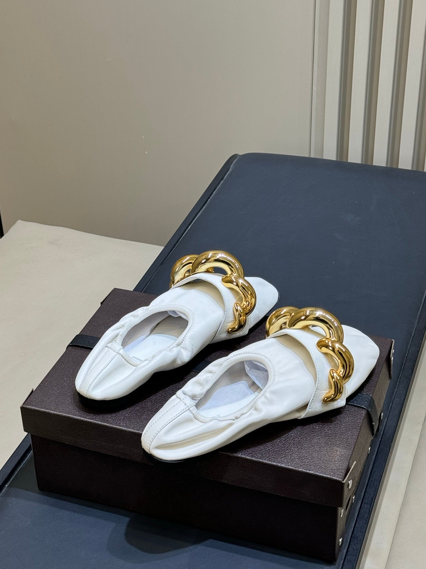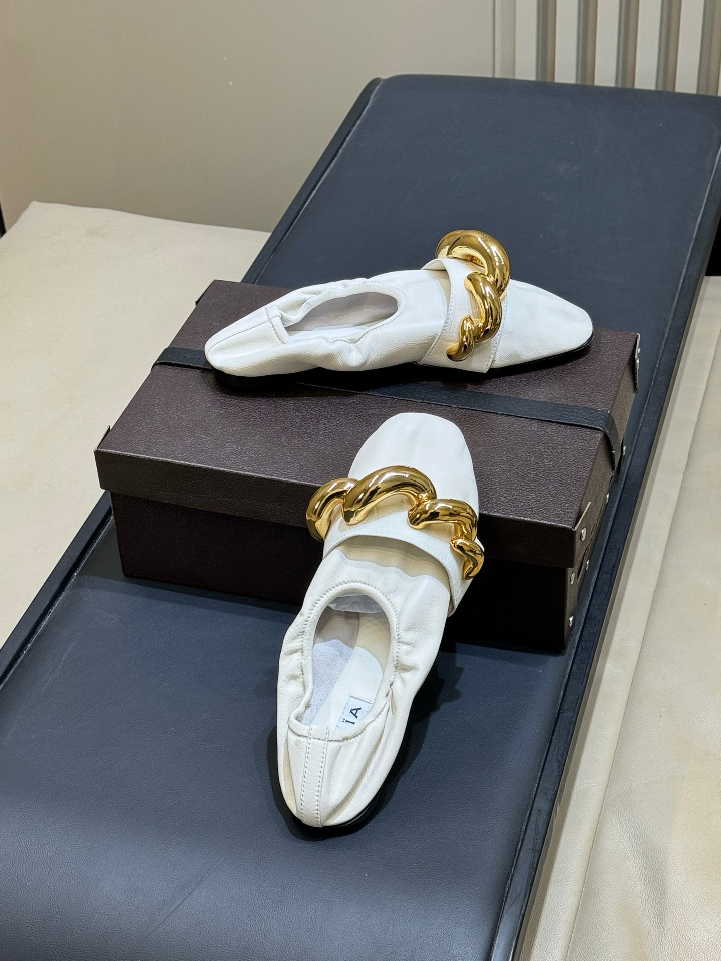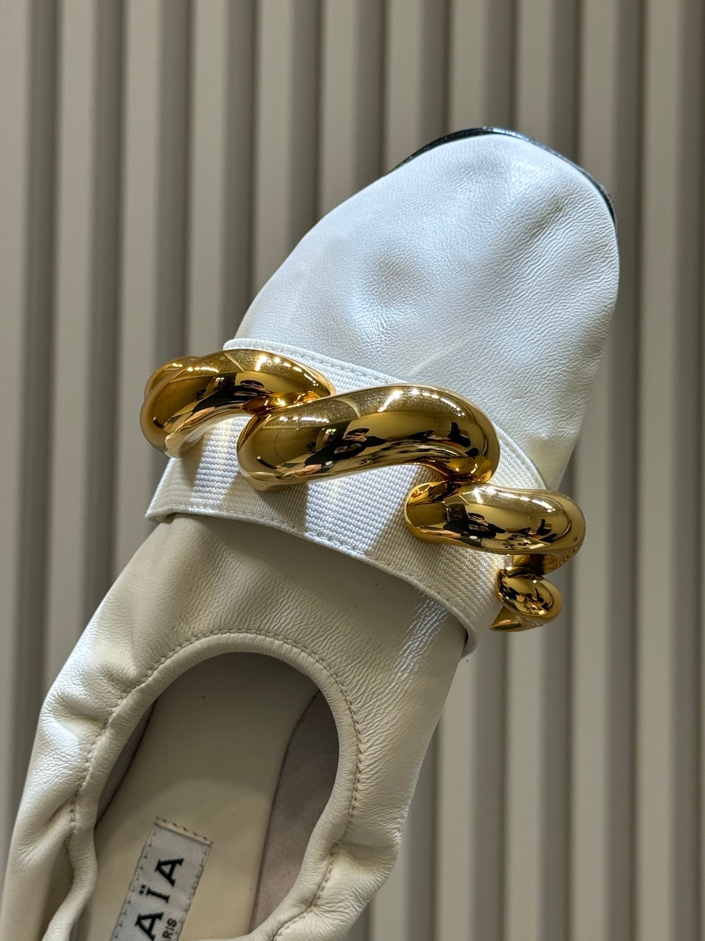 Alaia 26 Ballet Flats White Lambskin Gold Chain 621731