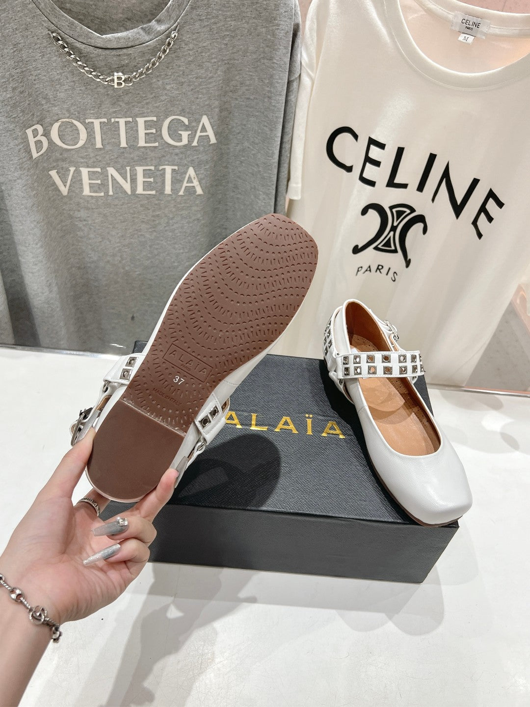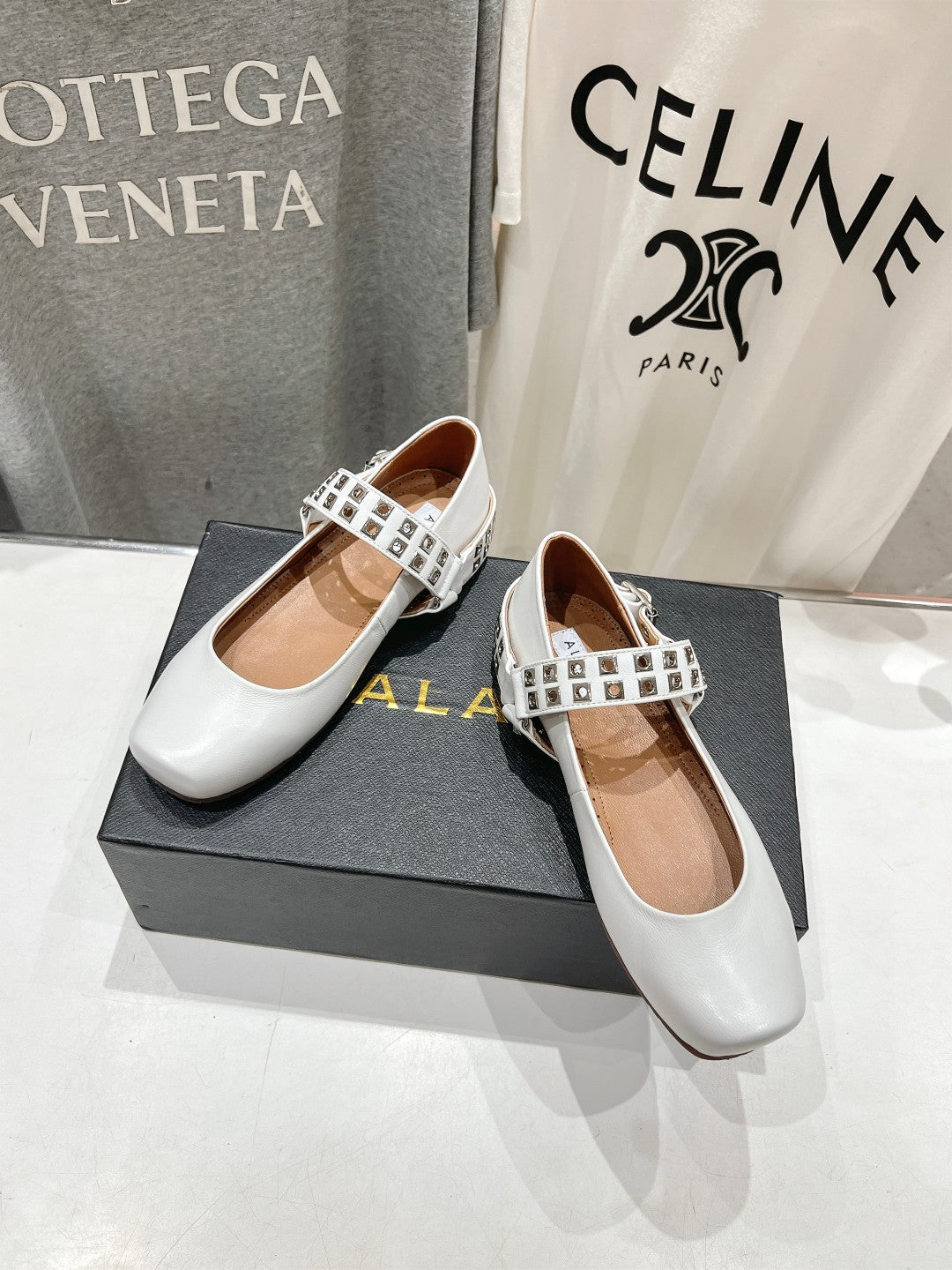 • Color: White, Beige • Material: Cowhide • High hell: 0,5CM • Size: 35 - 40