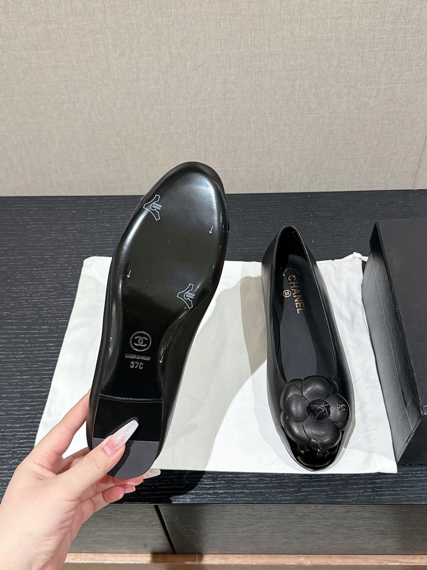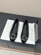 ballet flat flower black calfskin patent calfskin