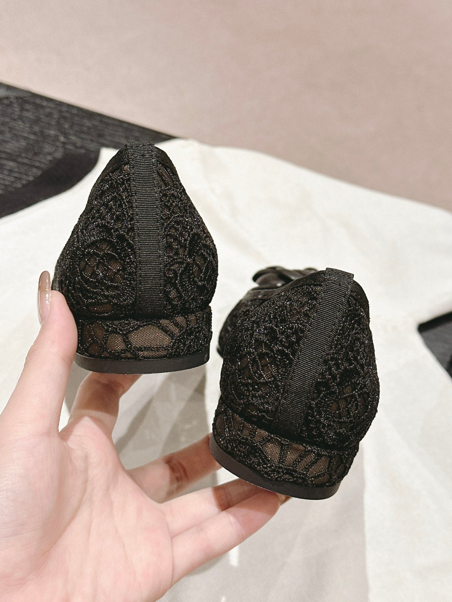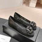 ballet flat flower black lace fabric