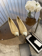 ballet flats beige silver lambskin canvas