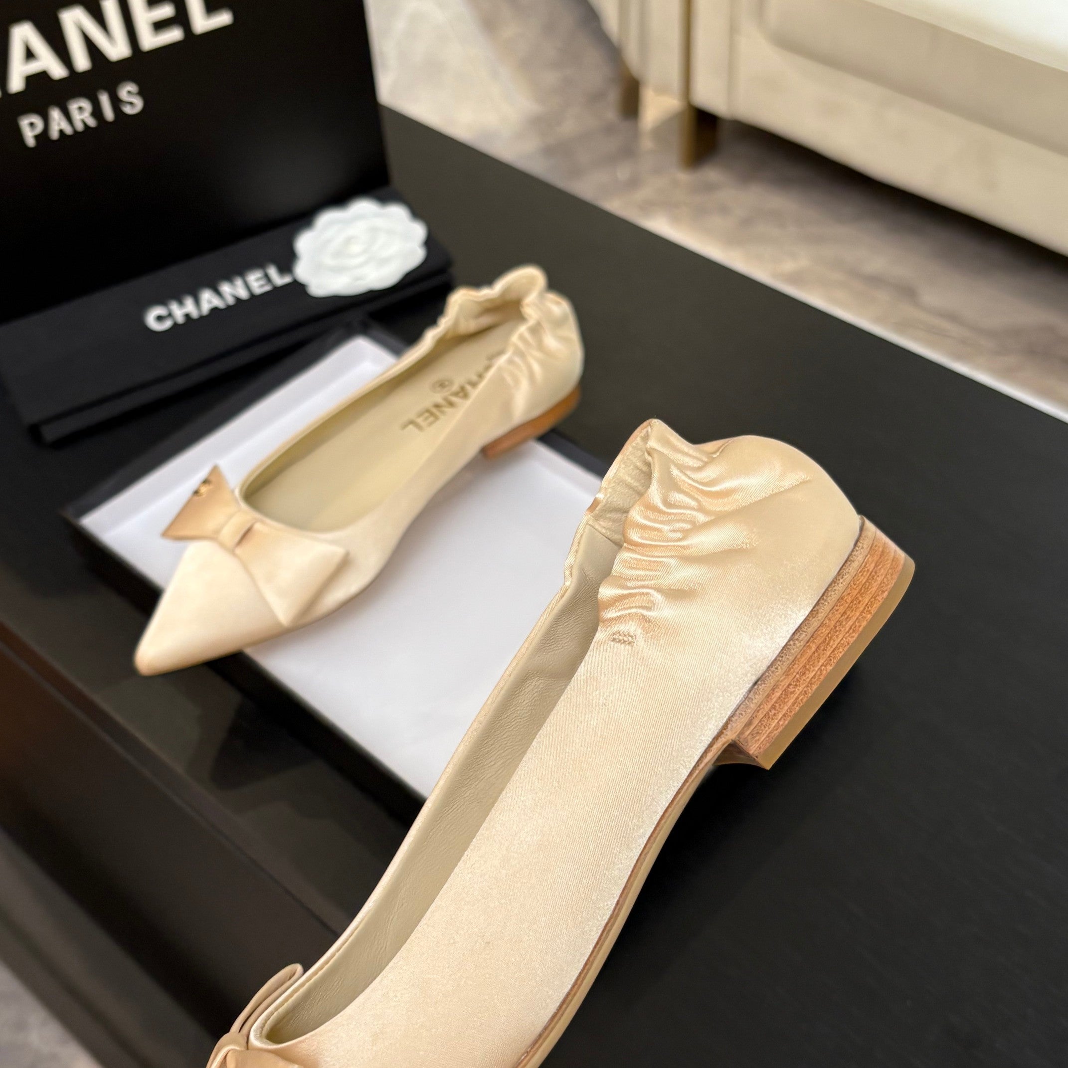 CC 25A Ballerina Beige Satin And Sheepskin 373778