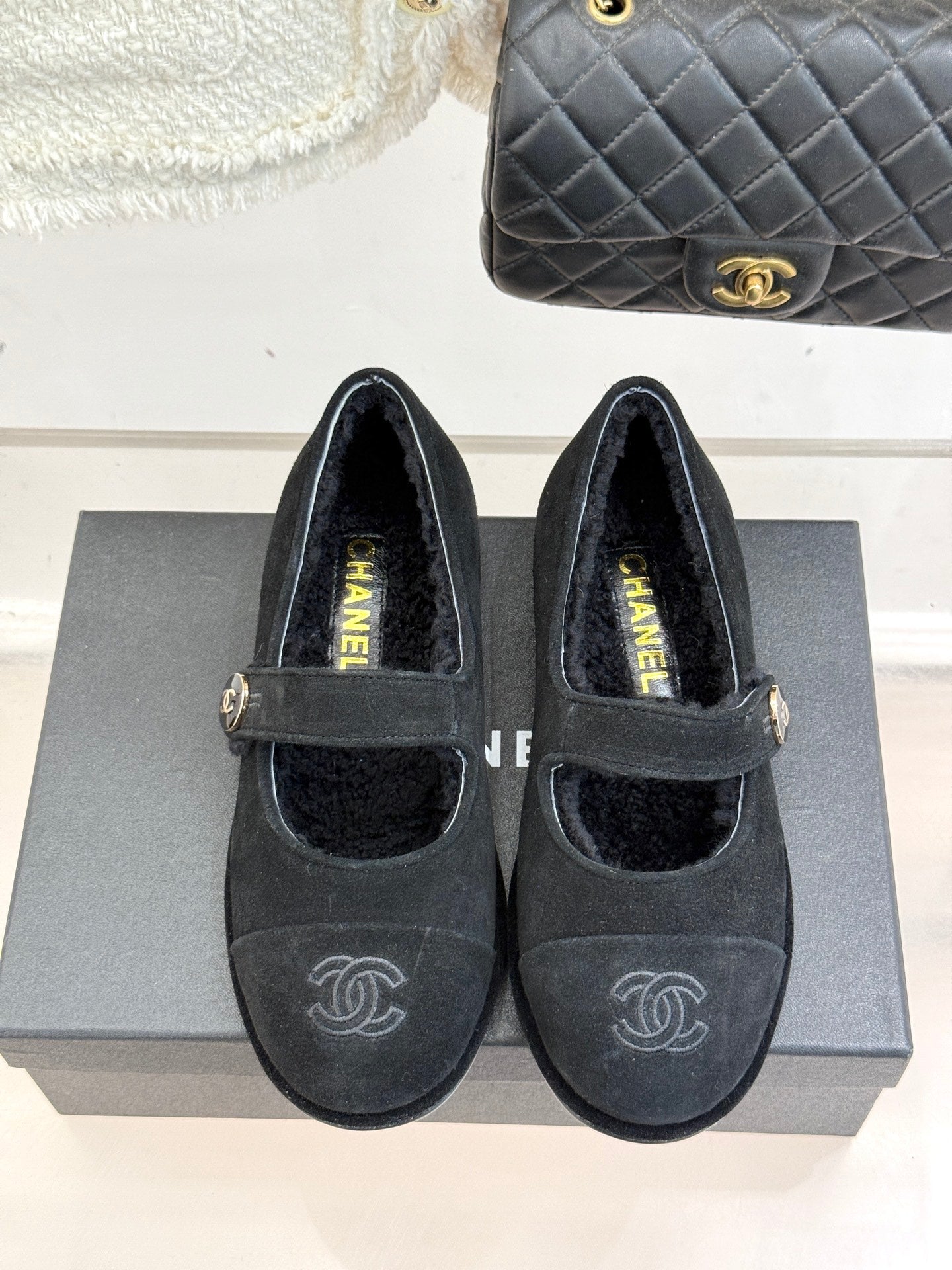 CC 25A Mary Janes Black Suede And Lambswool 404666
