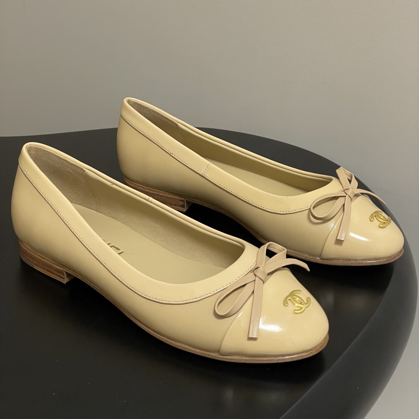 CC 25A Small Bow Ballet Flats Beige Sheepskin 393965