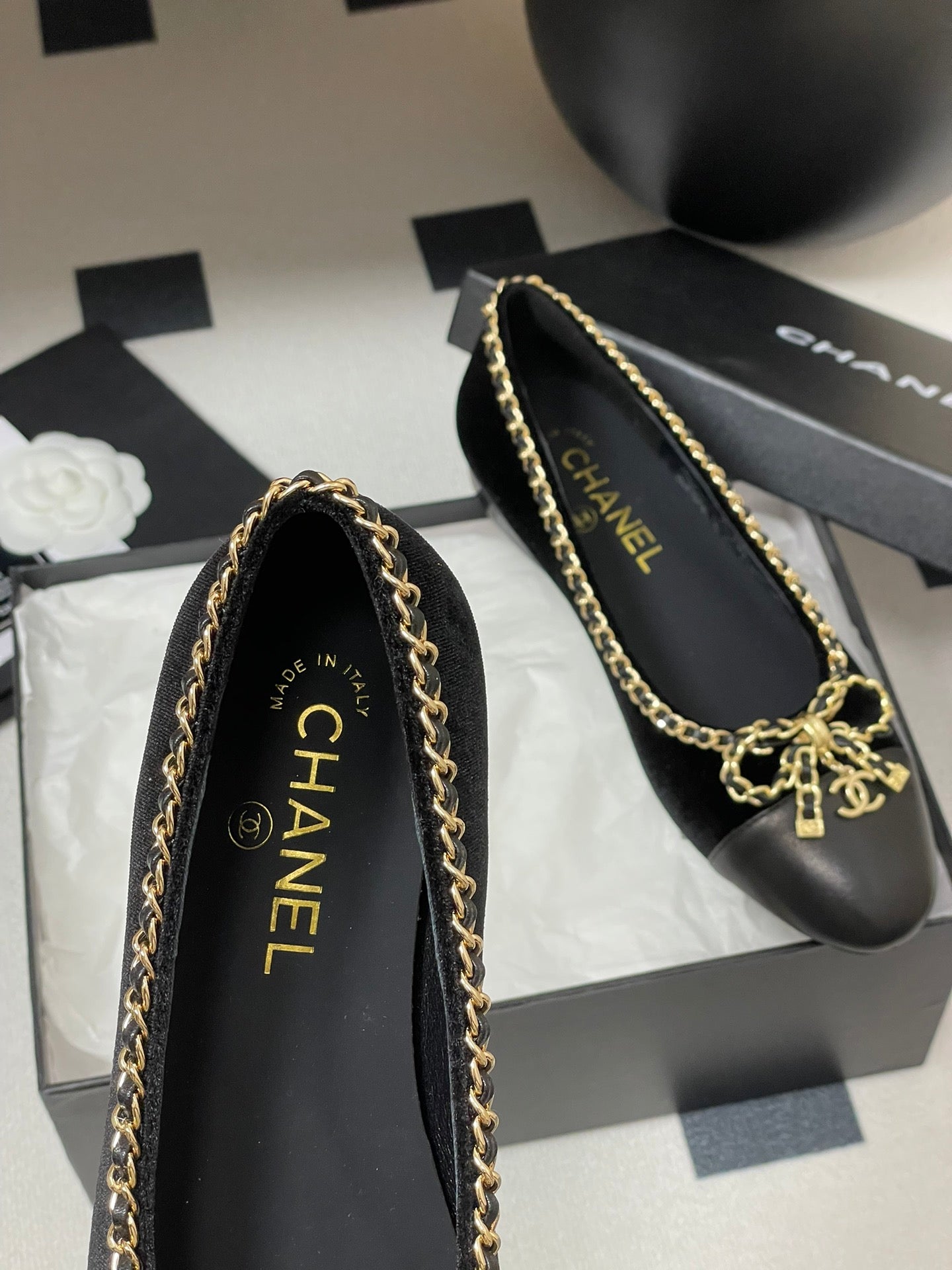 CC 25S 20mm Chain Bow Single Flat Black Velvet Sheepskin 247652