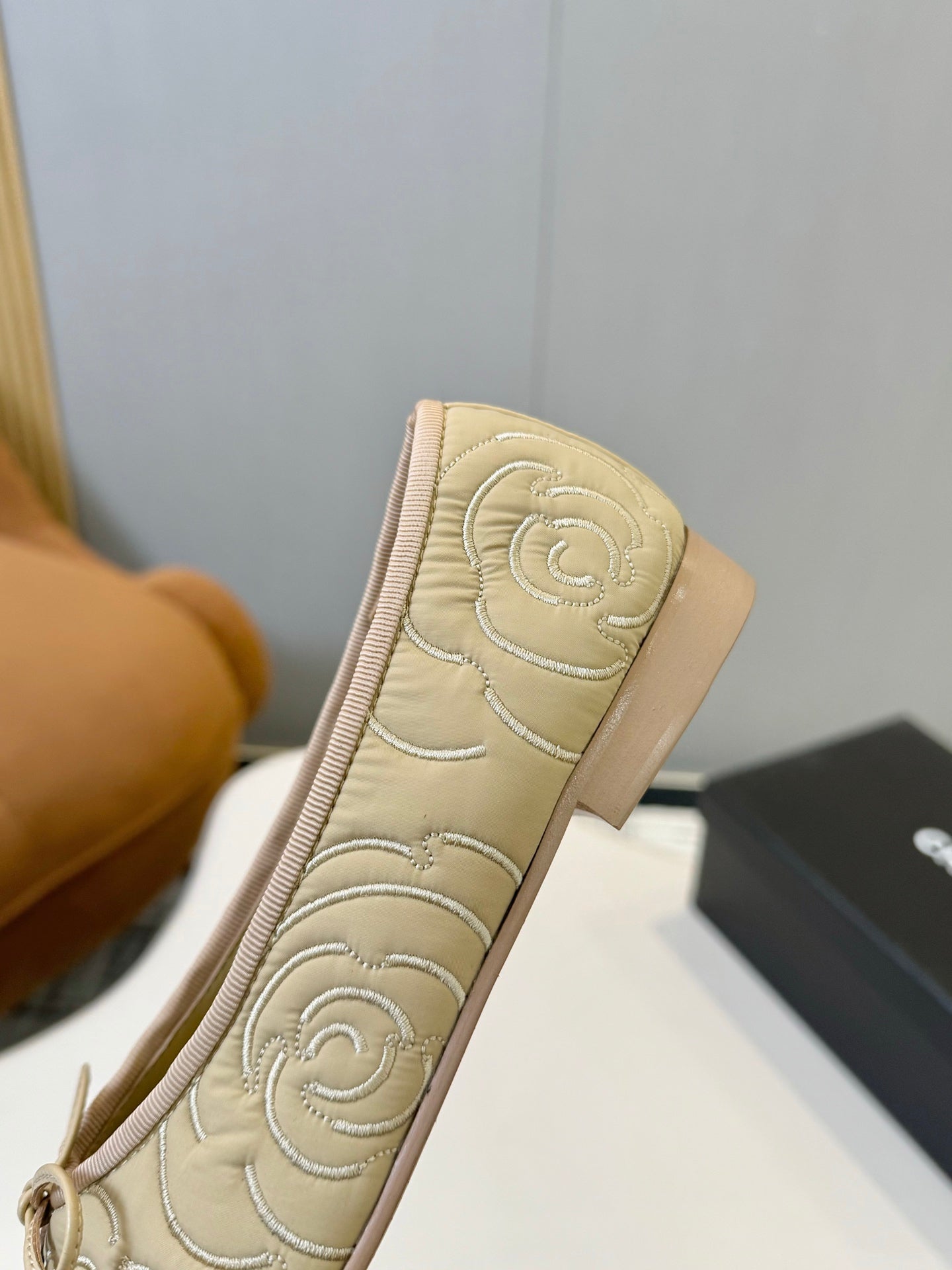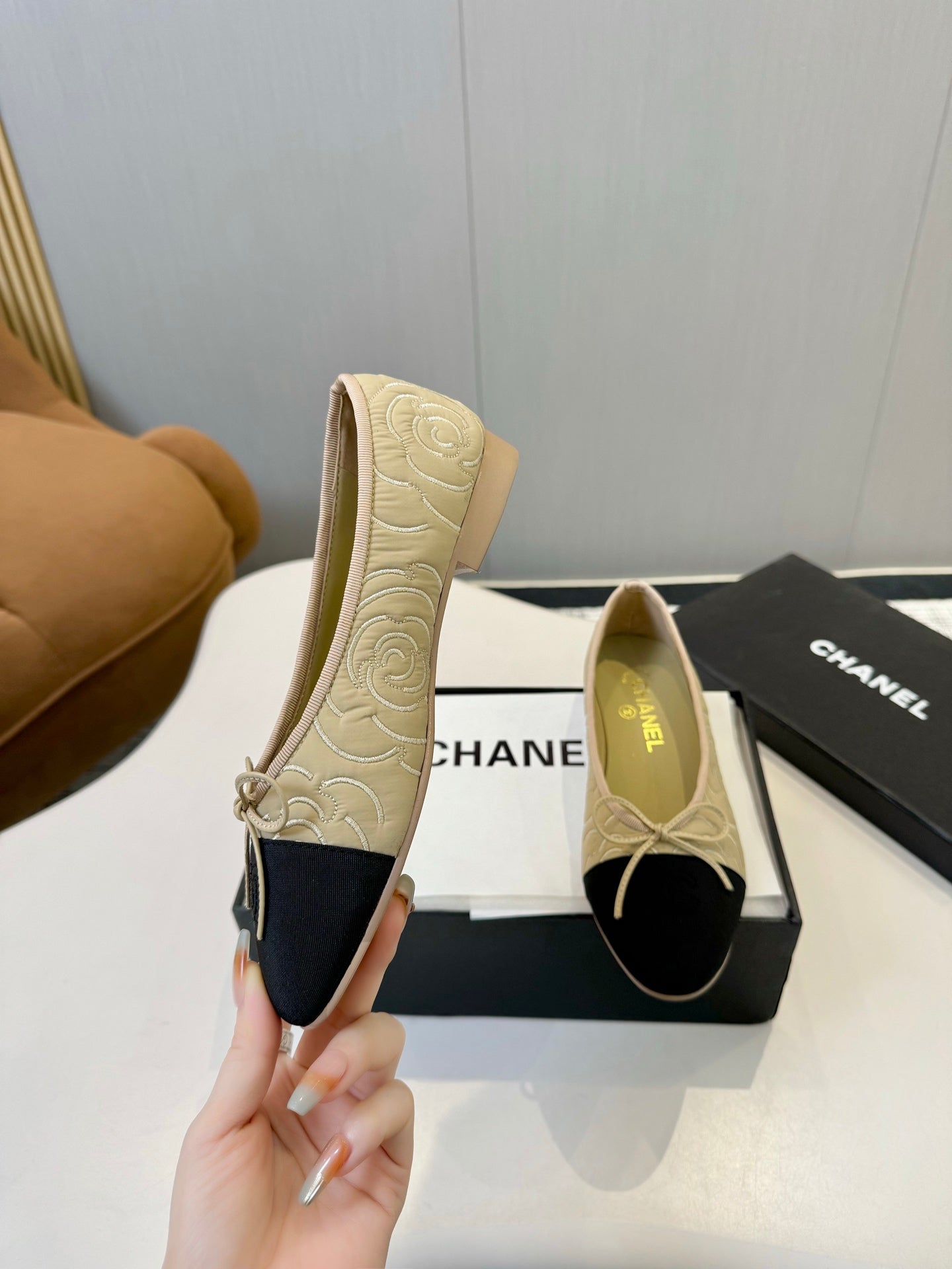 CC 25ss Métiers d’art Ballet Flats 10mm Black Beige Fabric Grosgrain 417040