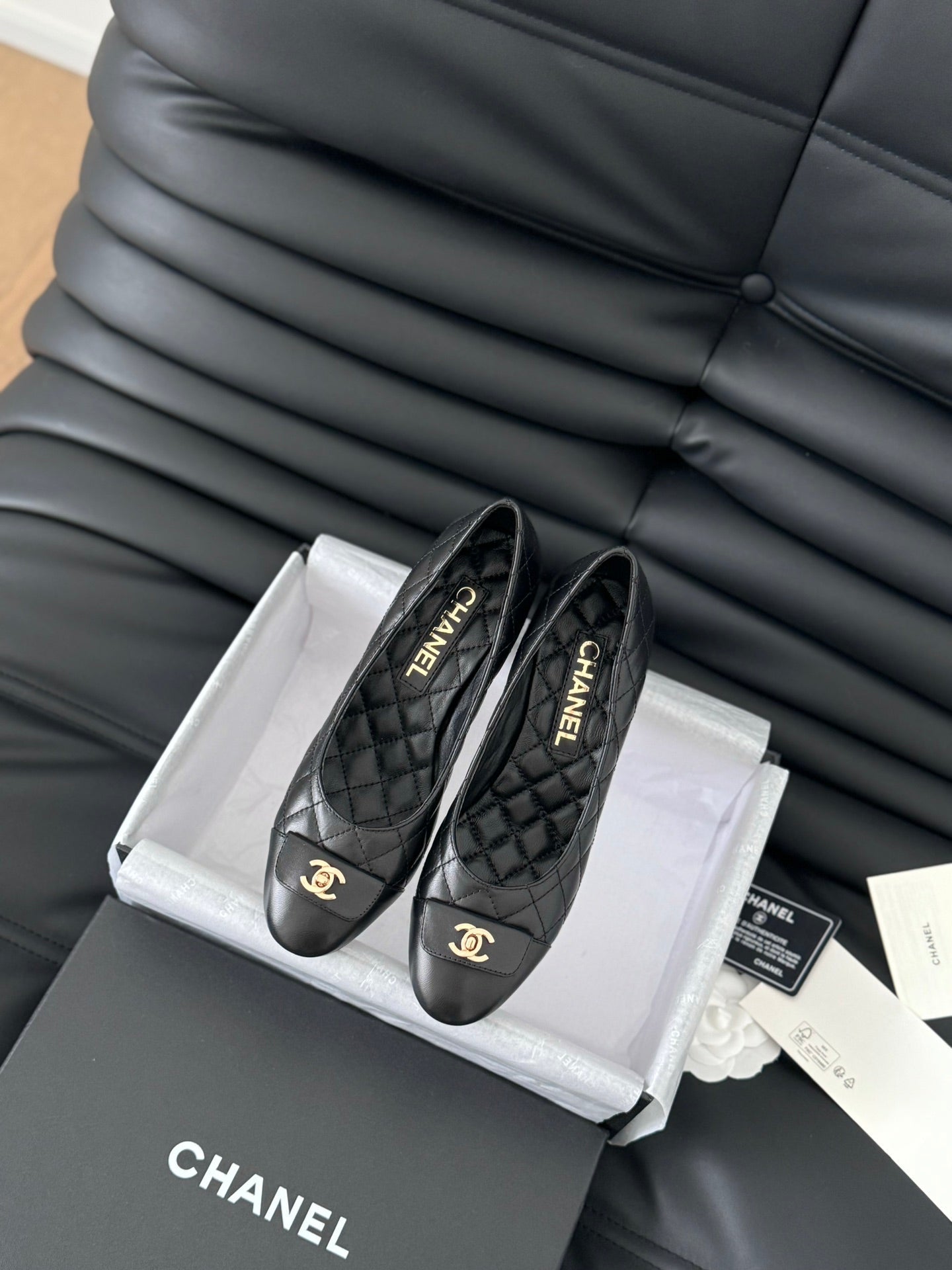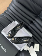 cc classic ballet flat with heel black quilted calfskin