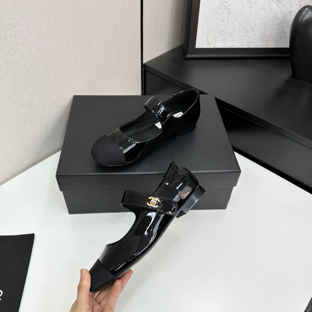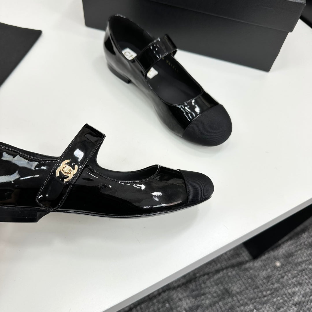 CC25 Mary Janes Black Patent Cowhide And Grosgrain 352505