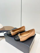 Chanel 25 Ballet Flat Tan Black Patent Leather 469255