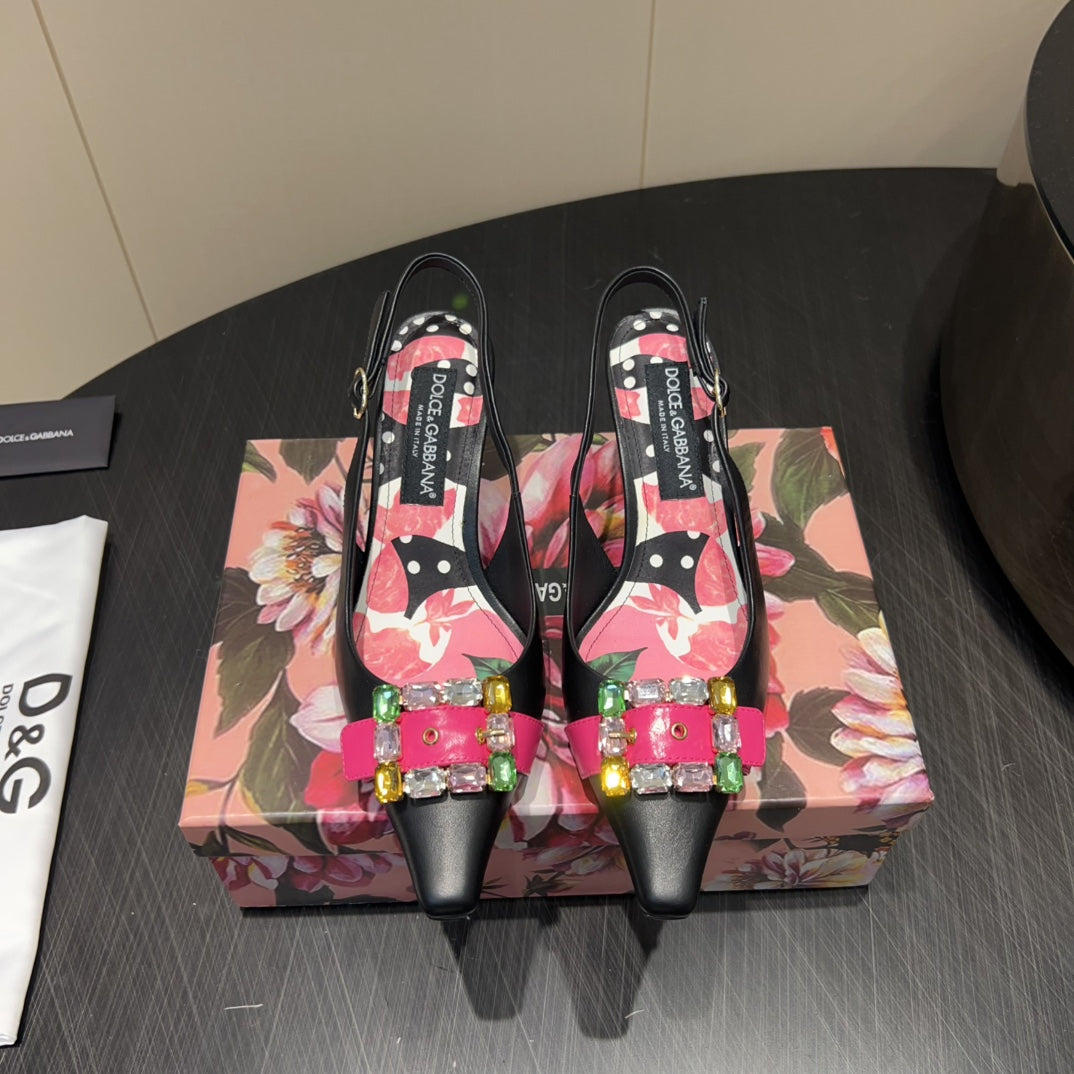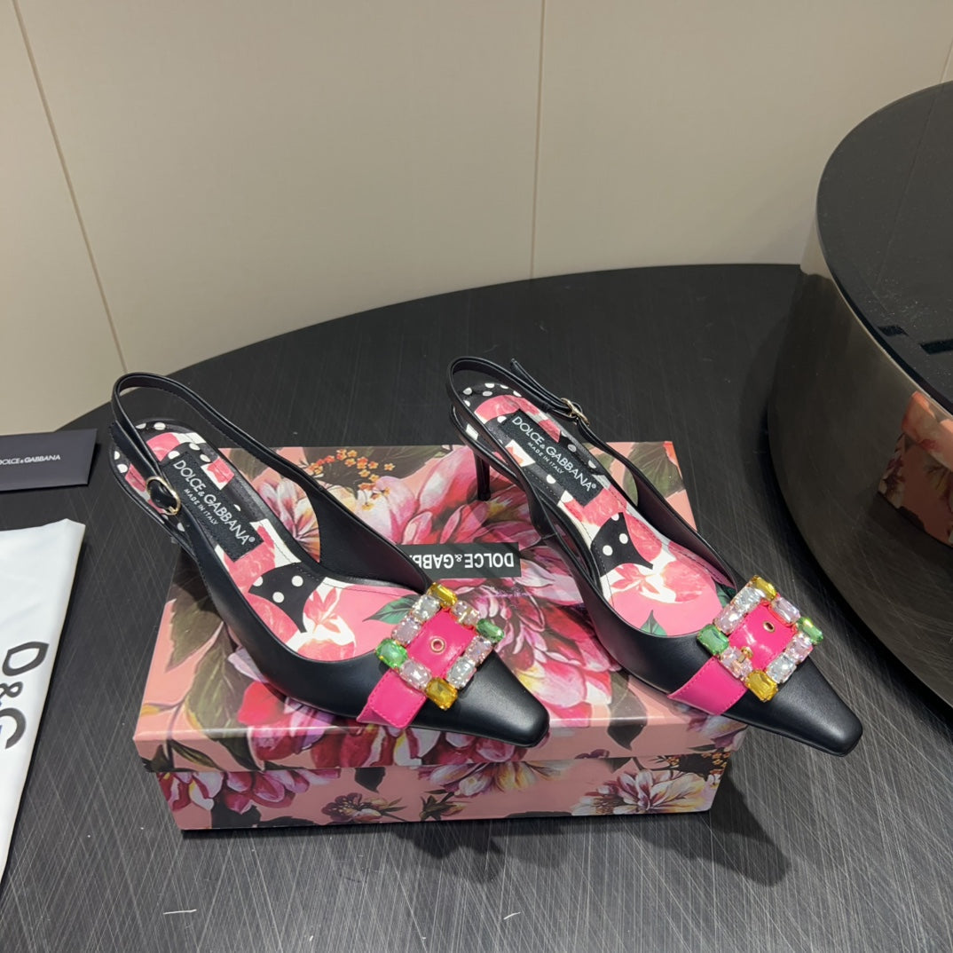 DC 25 Square Diamond Buckle Slingback 35mm Black Cowhide And Sheepskin 381621