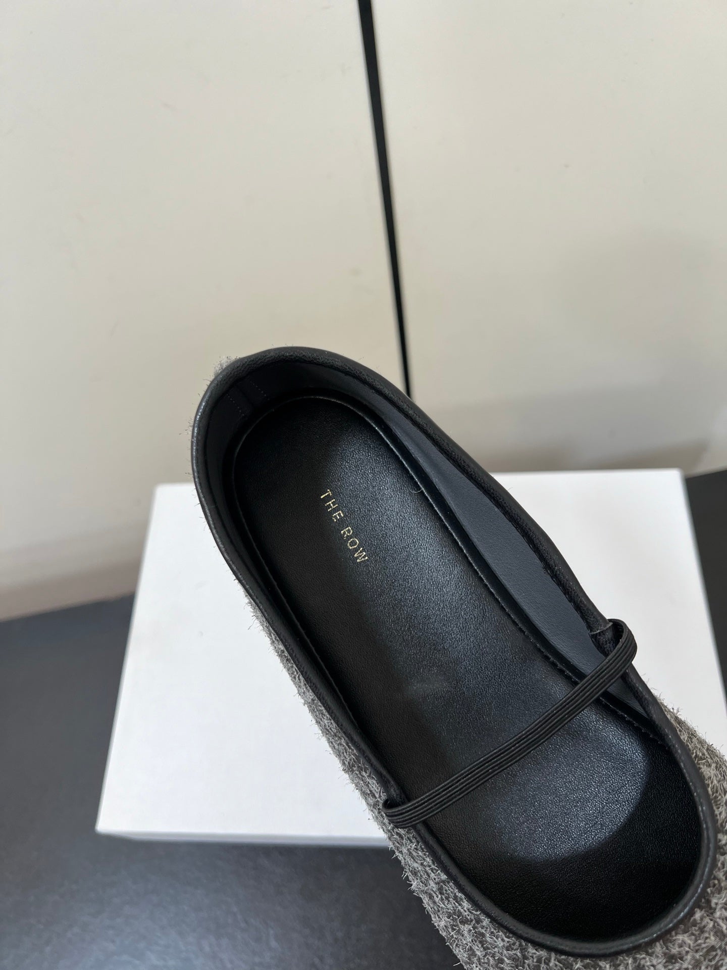 The Row Elastic Ballet Flats Light Grey Sheepskin 339992