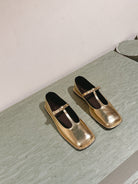 The Row Square T-Strap Flat Gold Metallic Leather 451286
