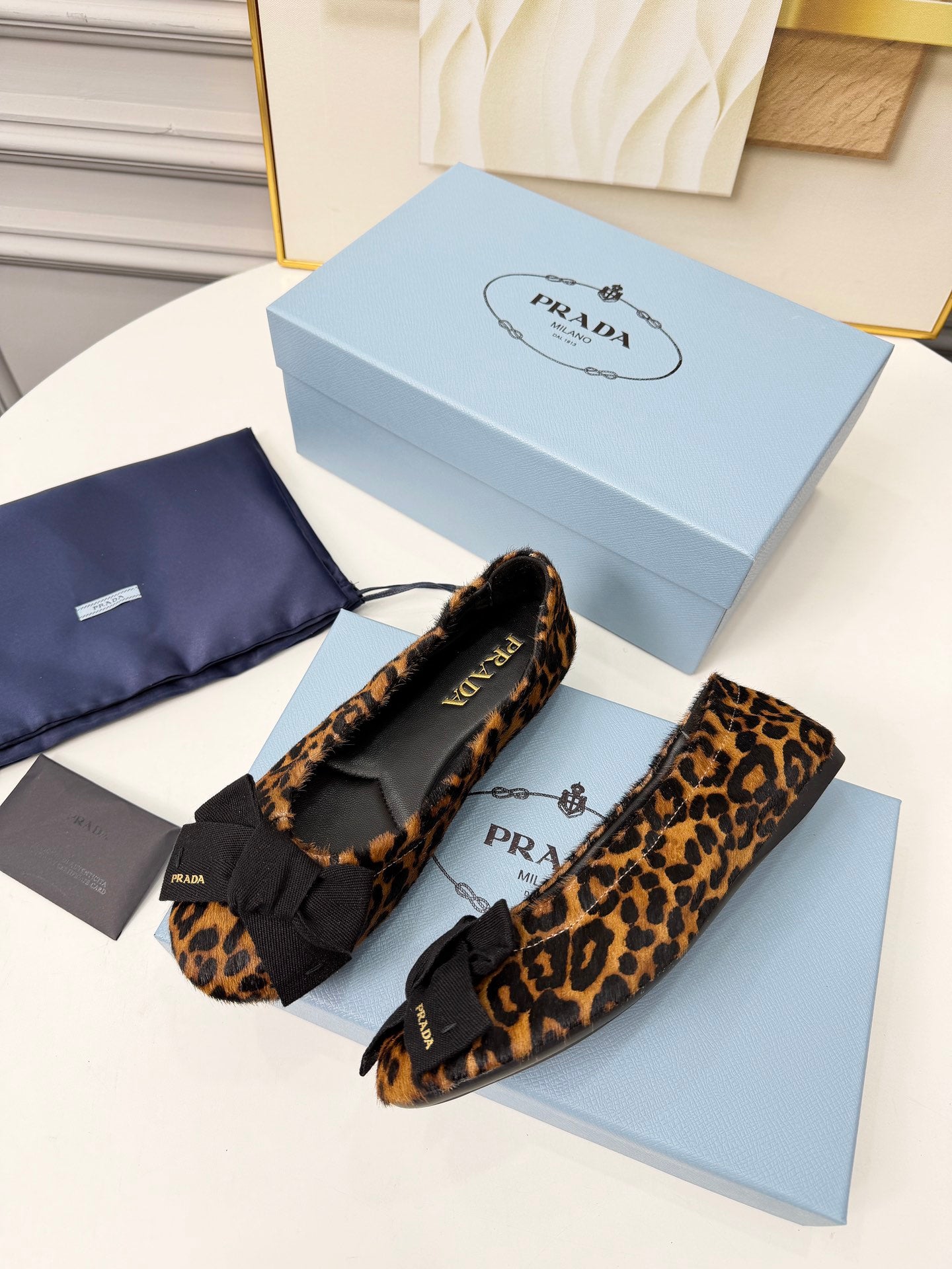Prada 26s Bow Ballet Flats Leopard Horse Hair 624085