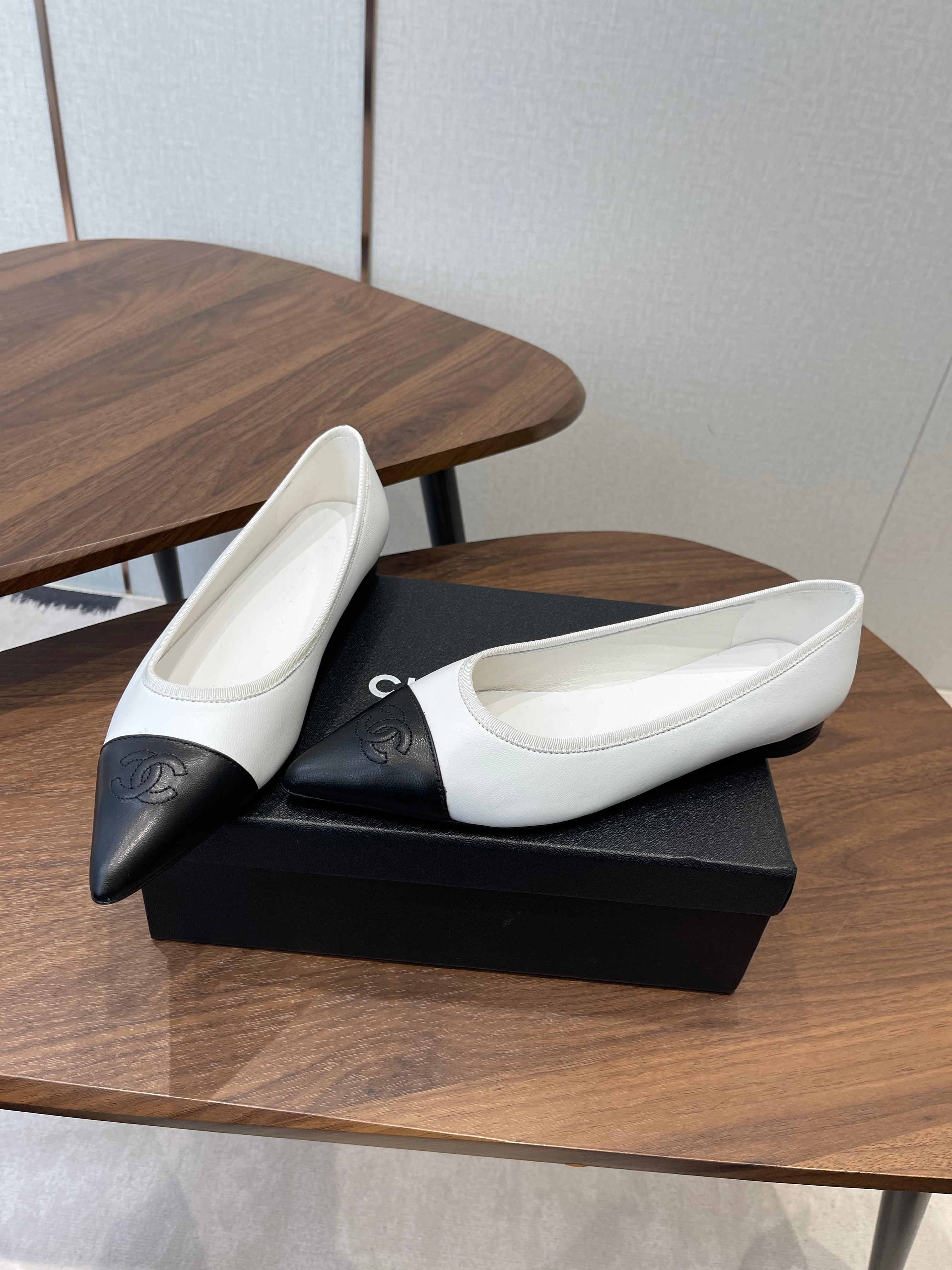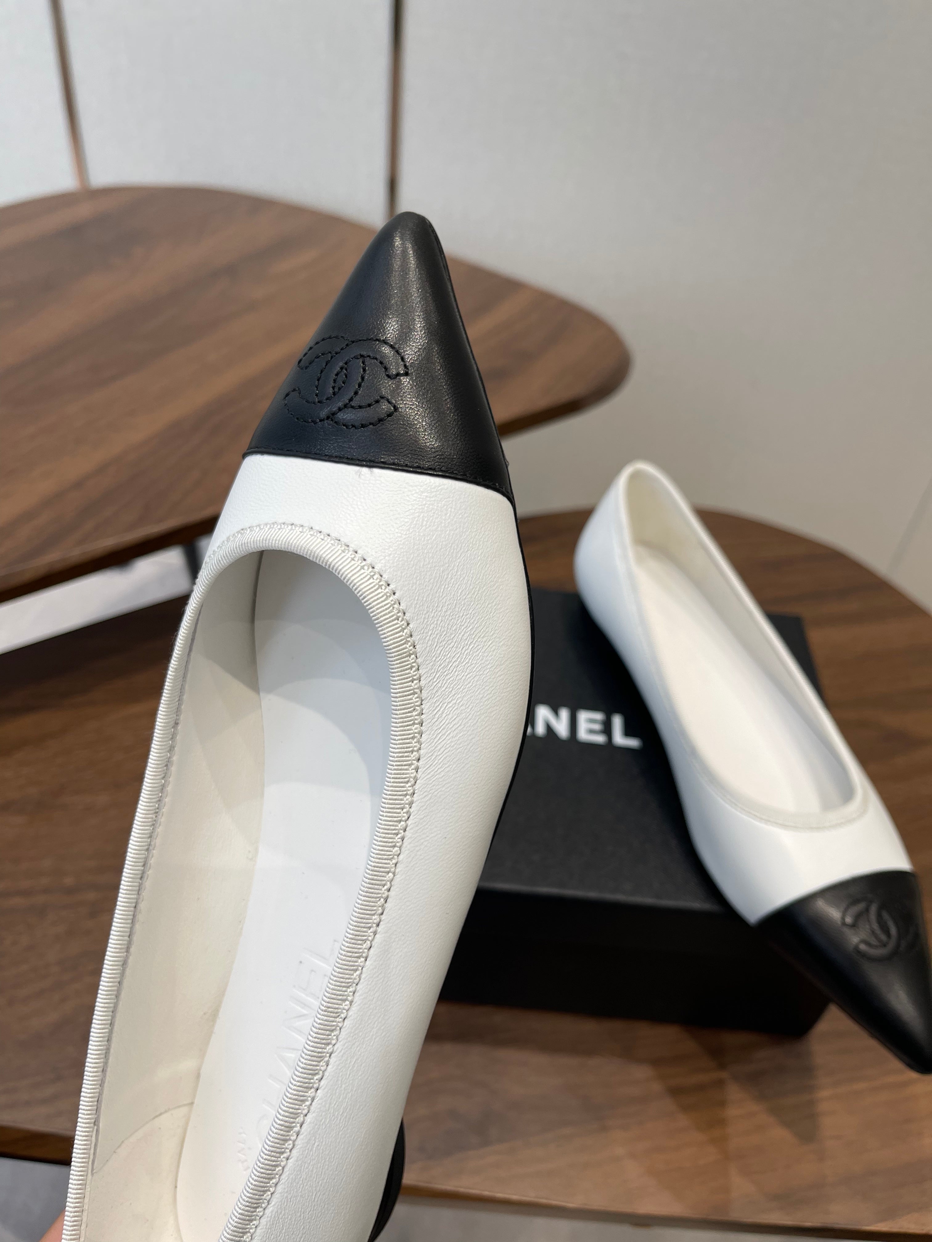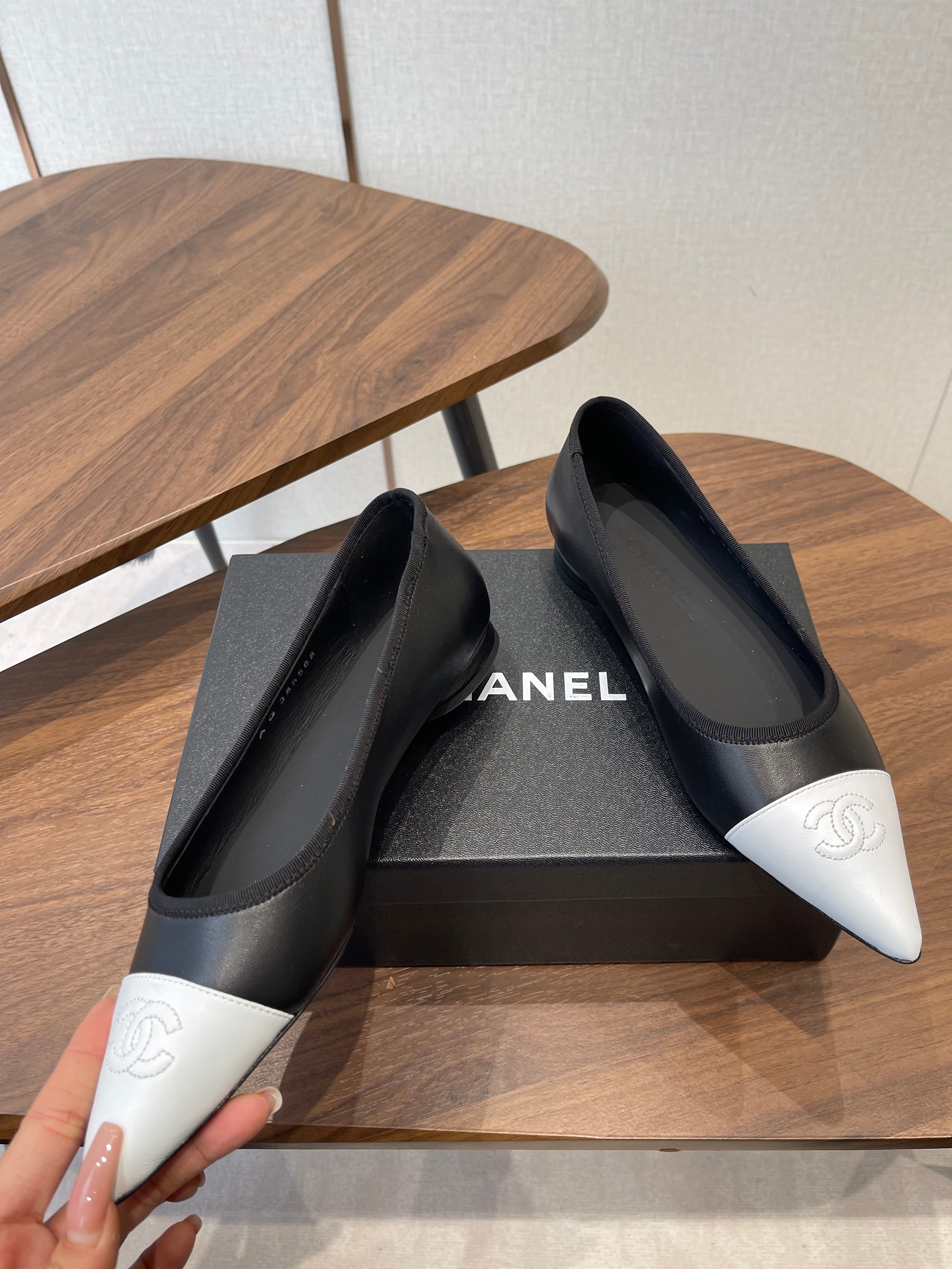 CC 26s Ballet Flats Black White Lambskin 624237