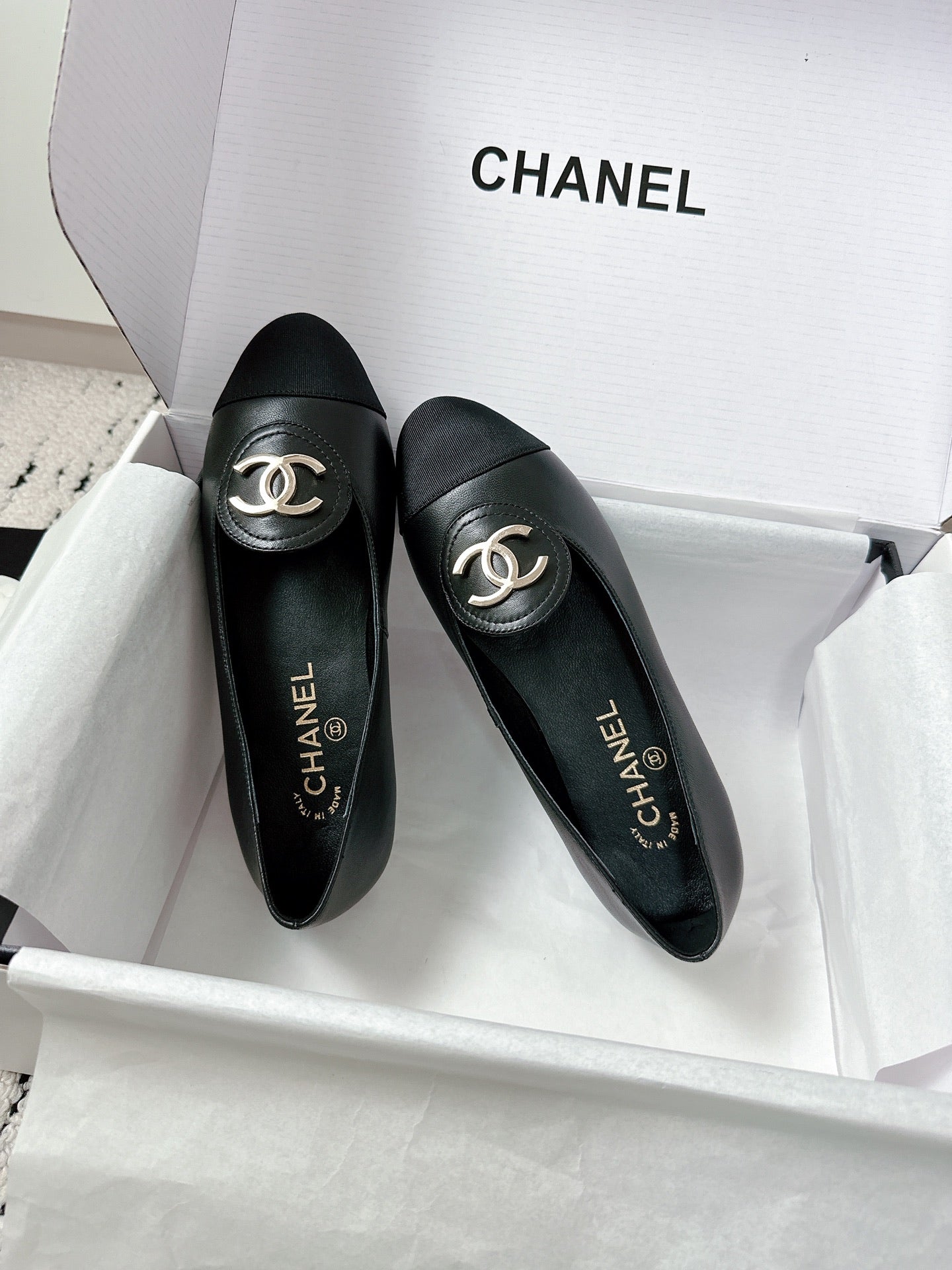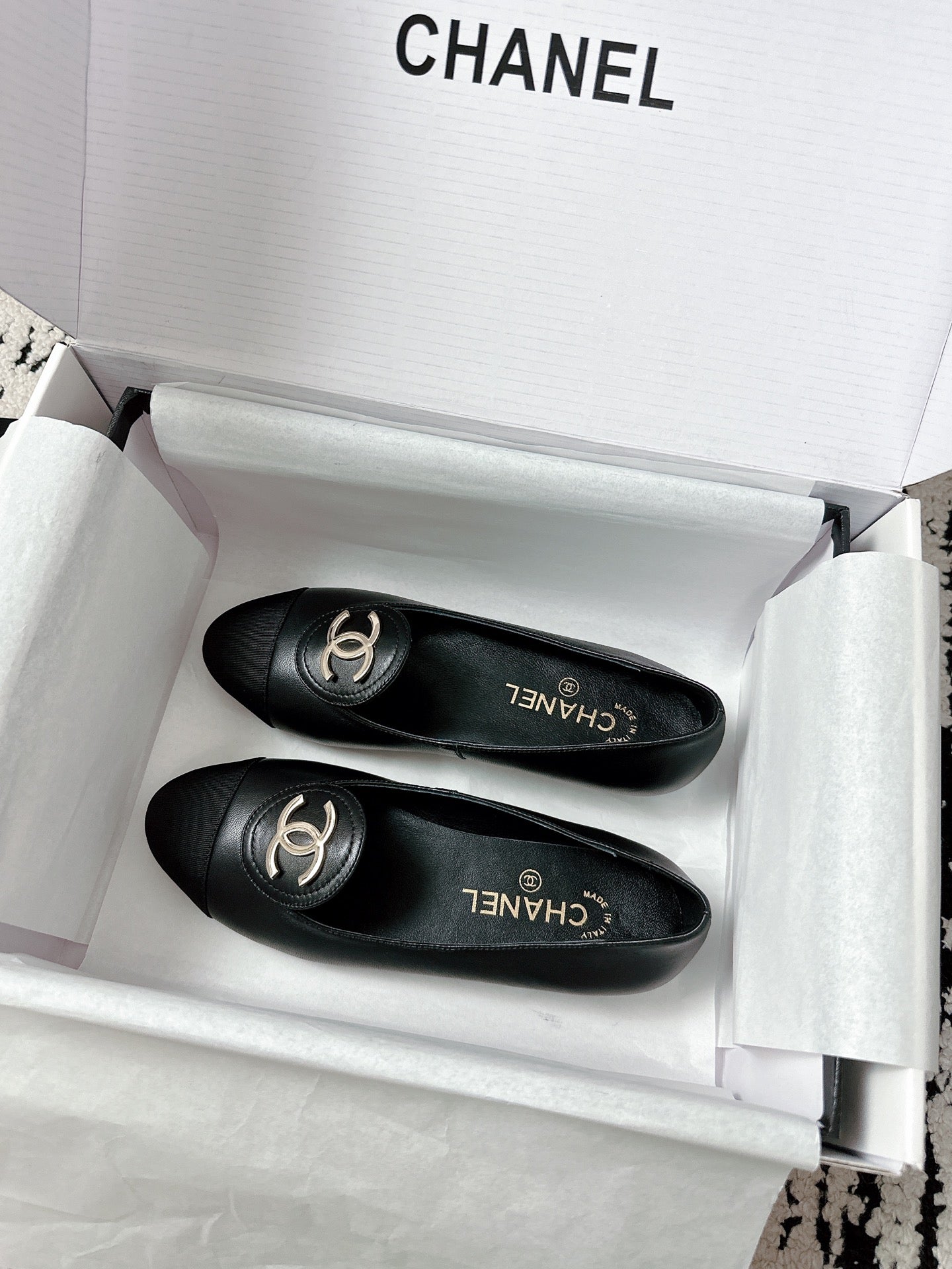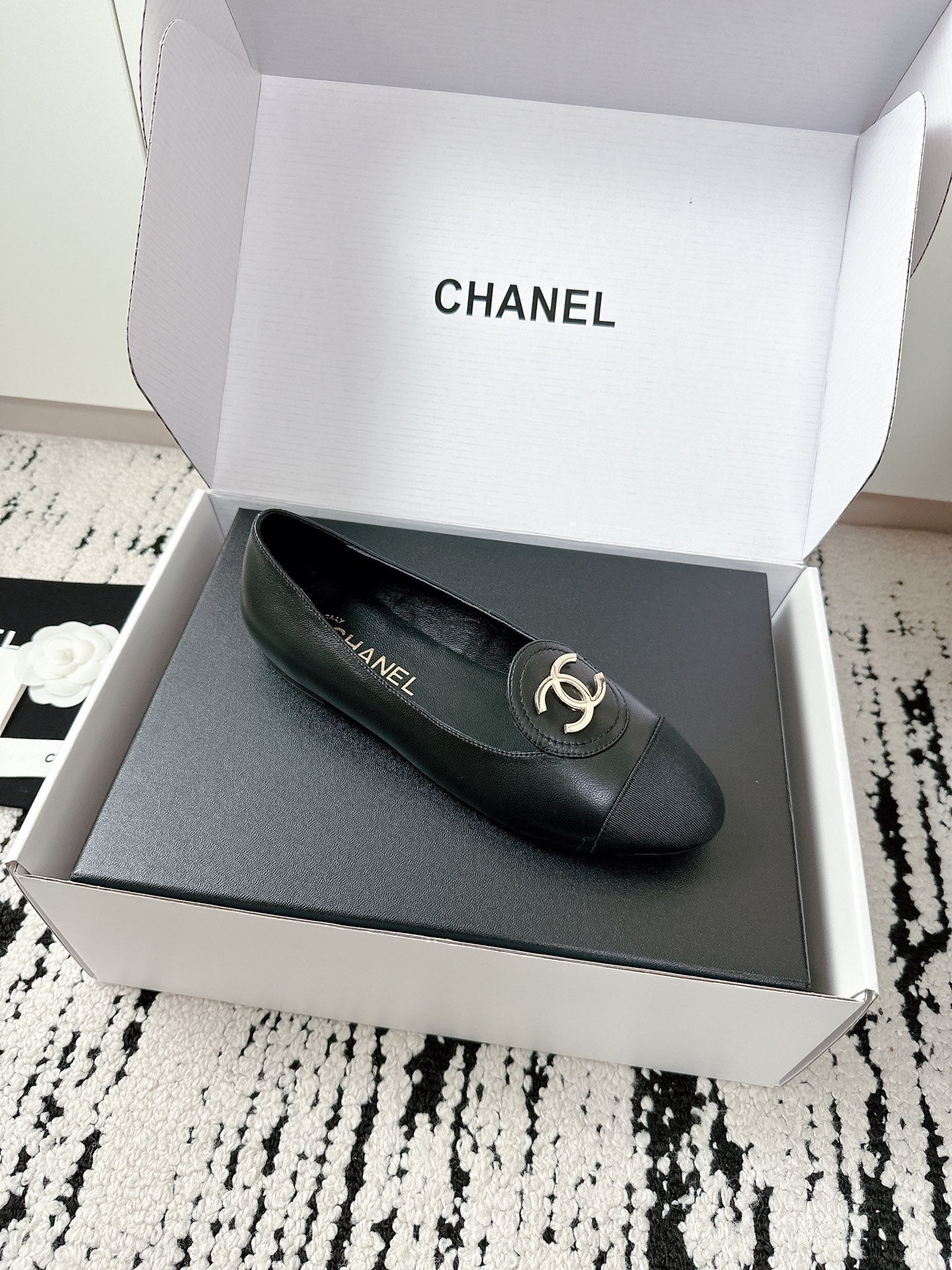 CC 26s Ballet Flats Black White Lambskin 624237
