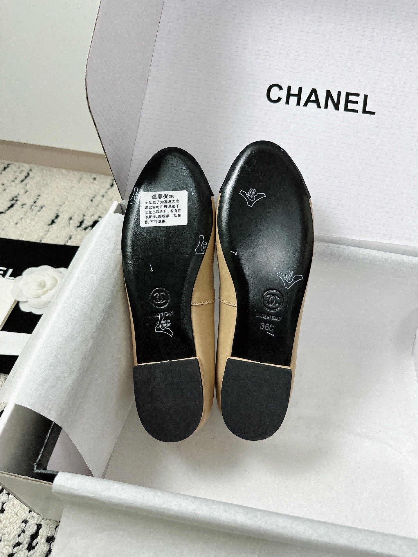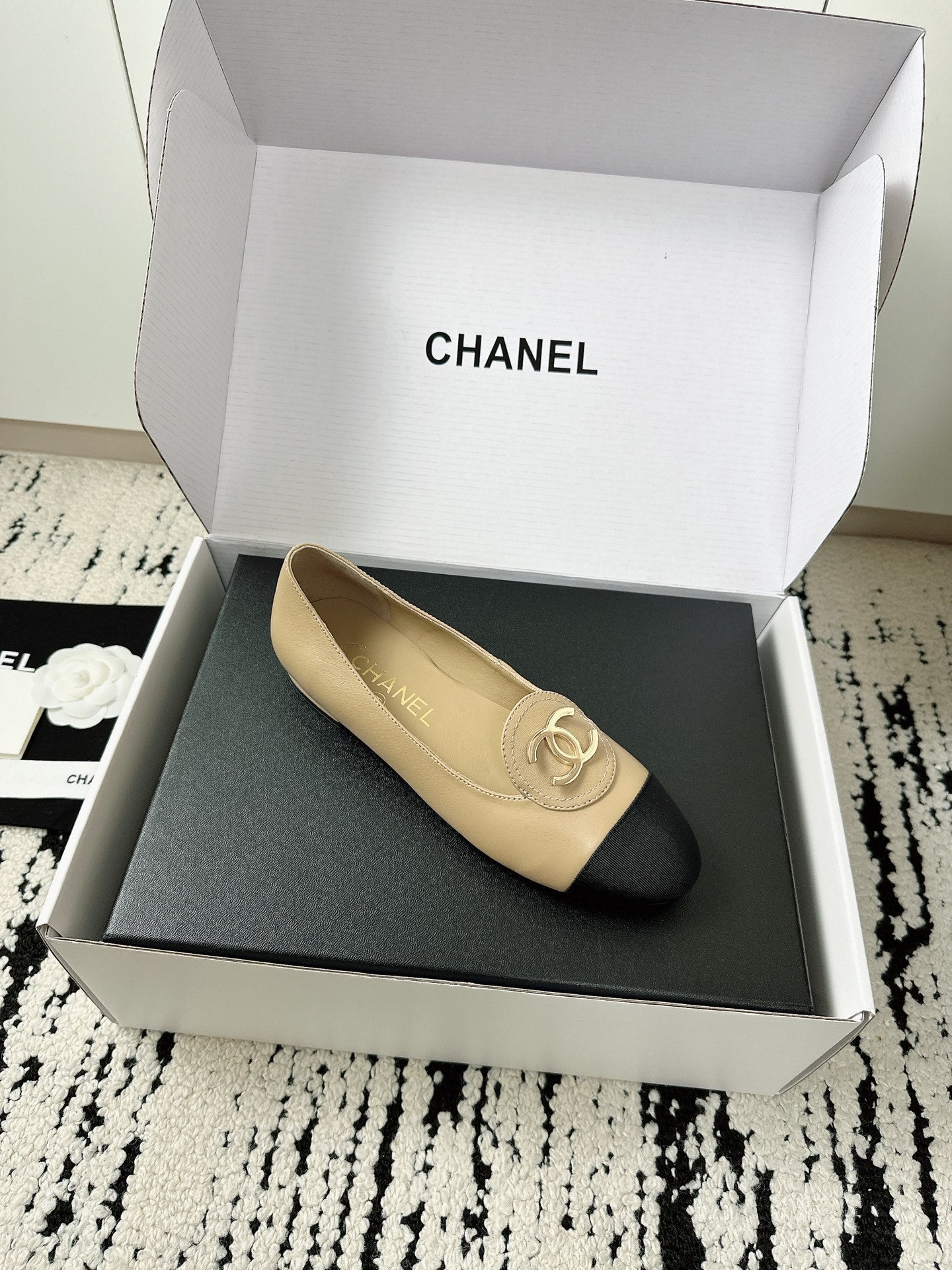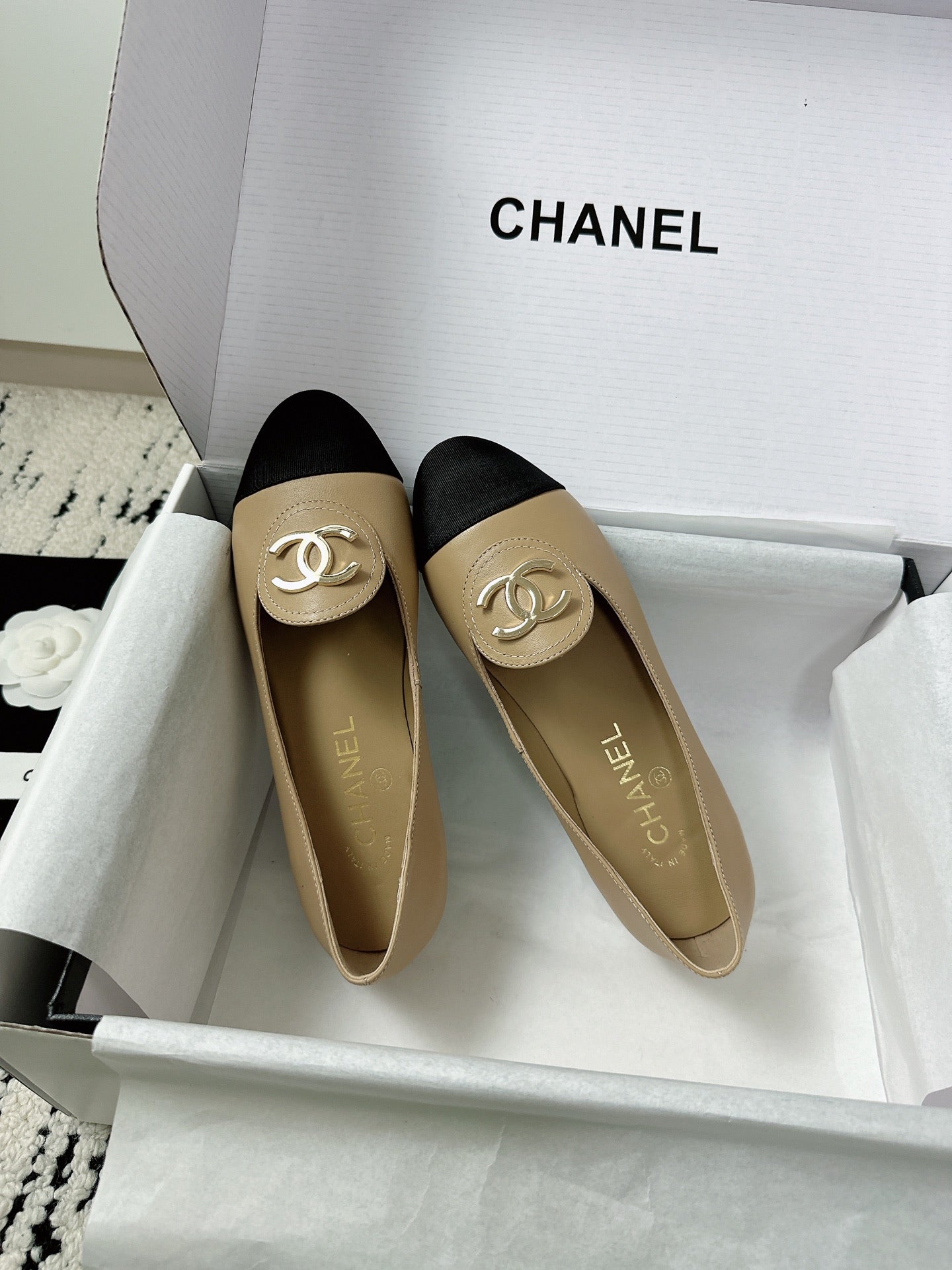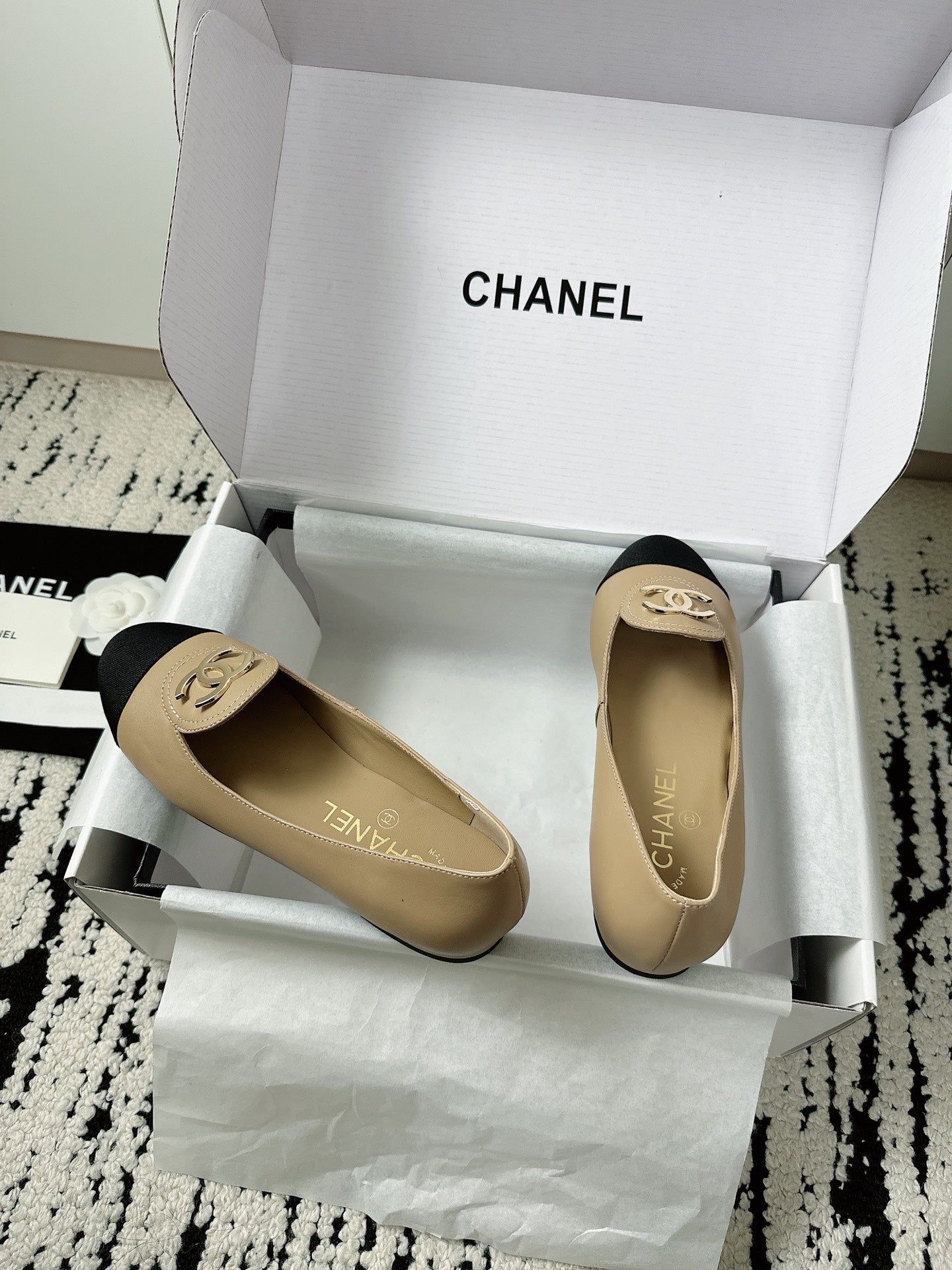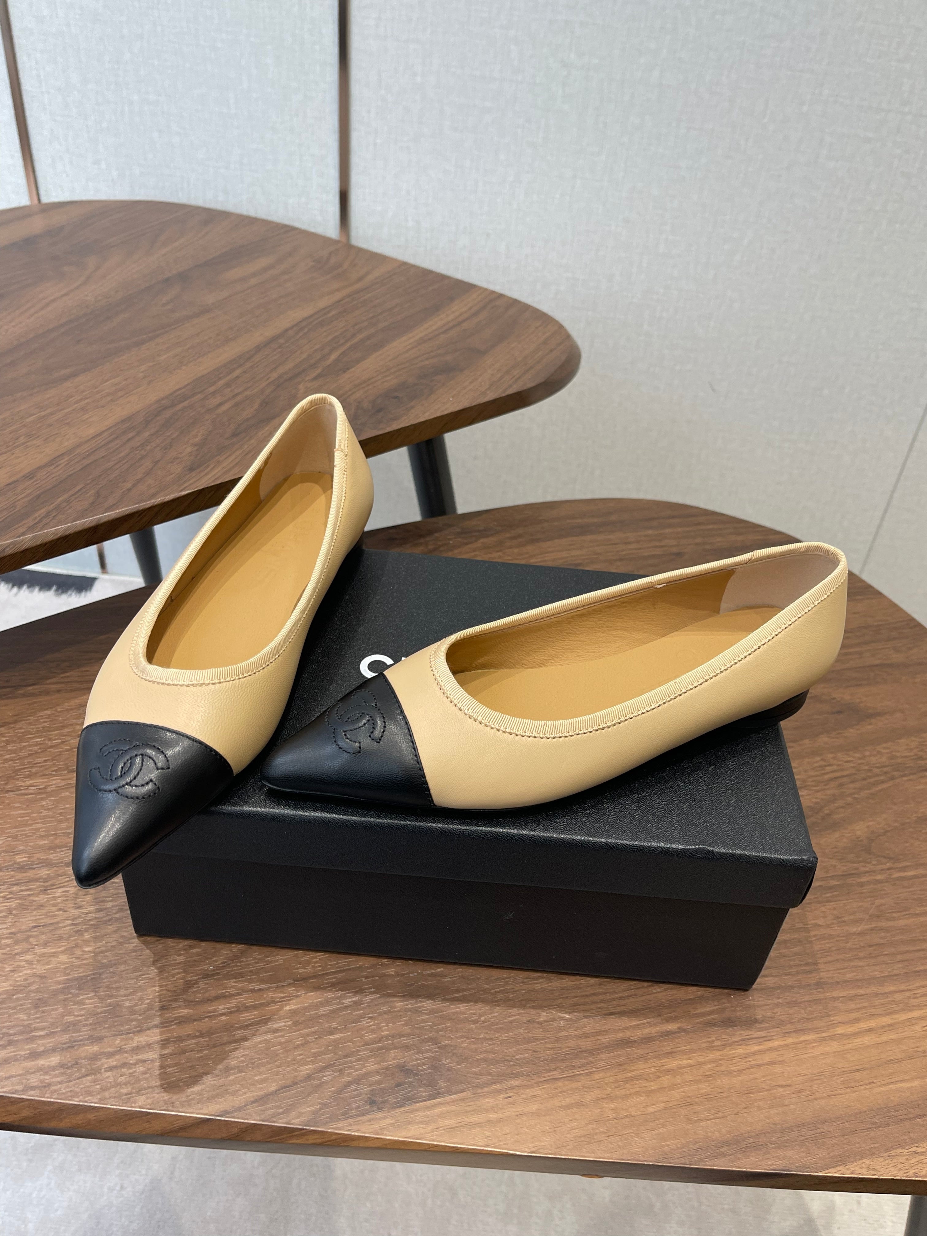 CC 26s Ballet Flats Beige Black Lambskin 624240