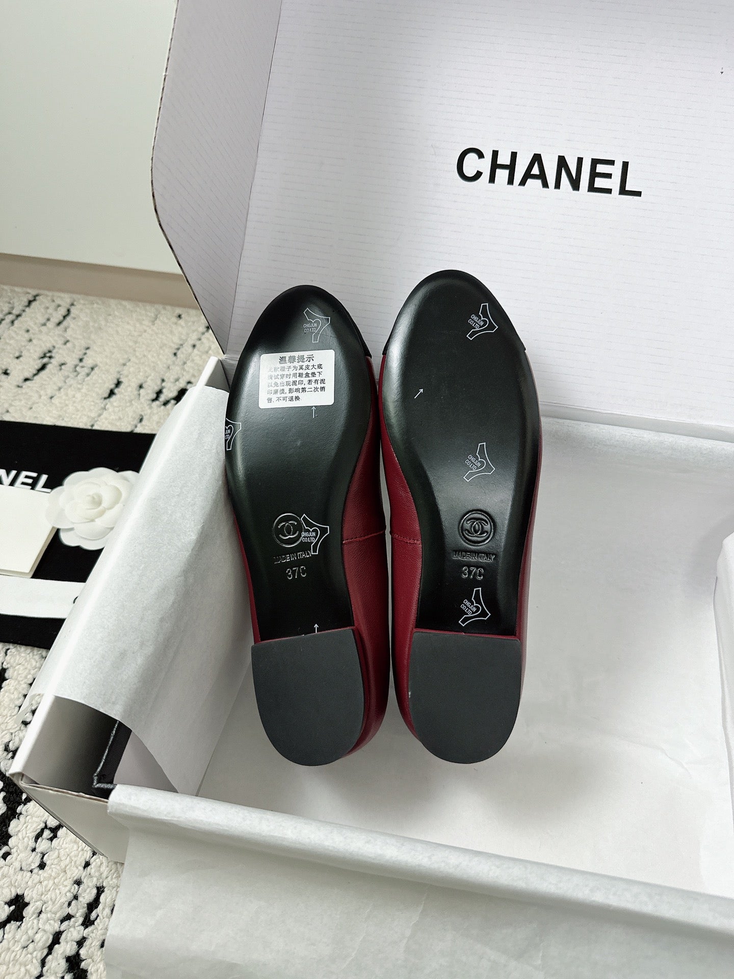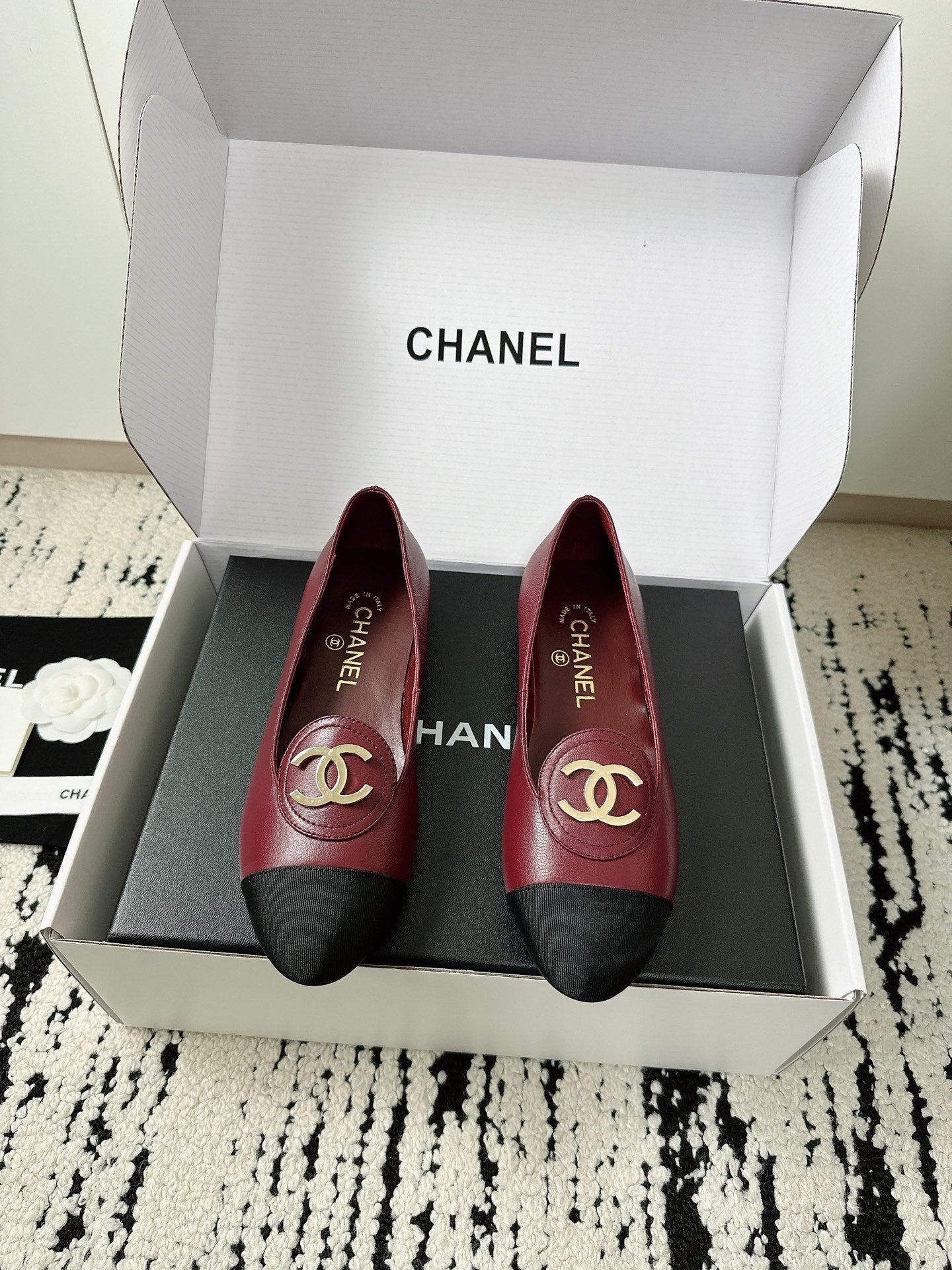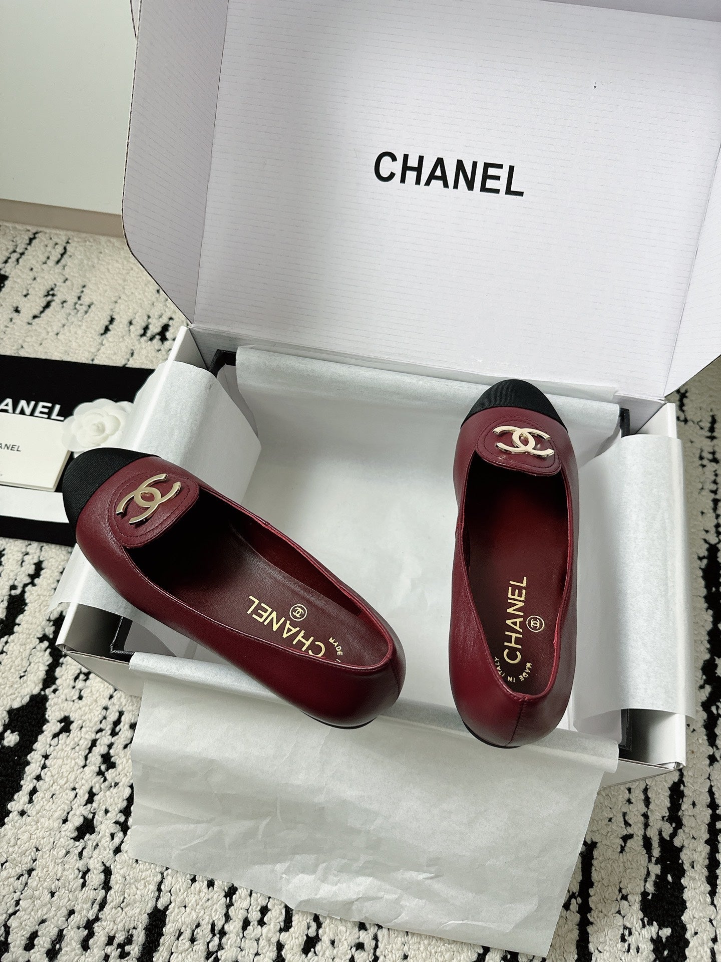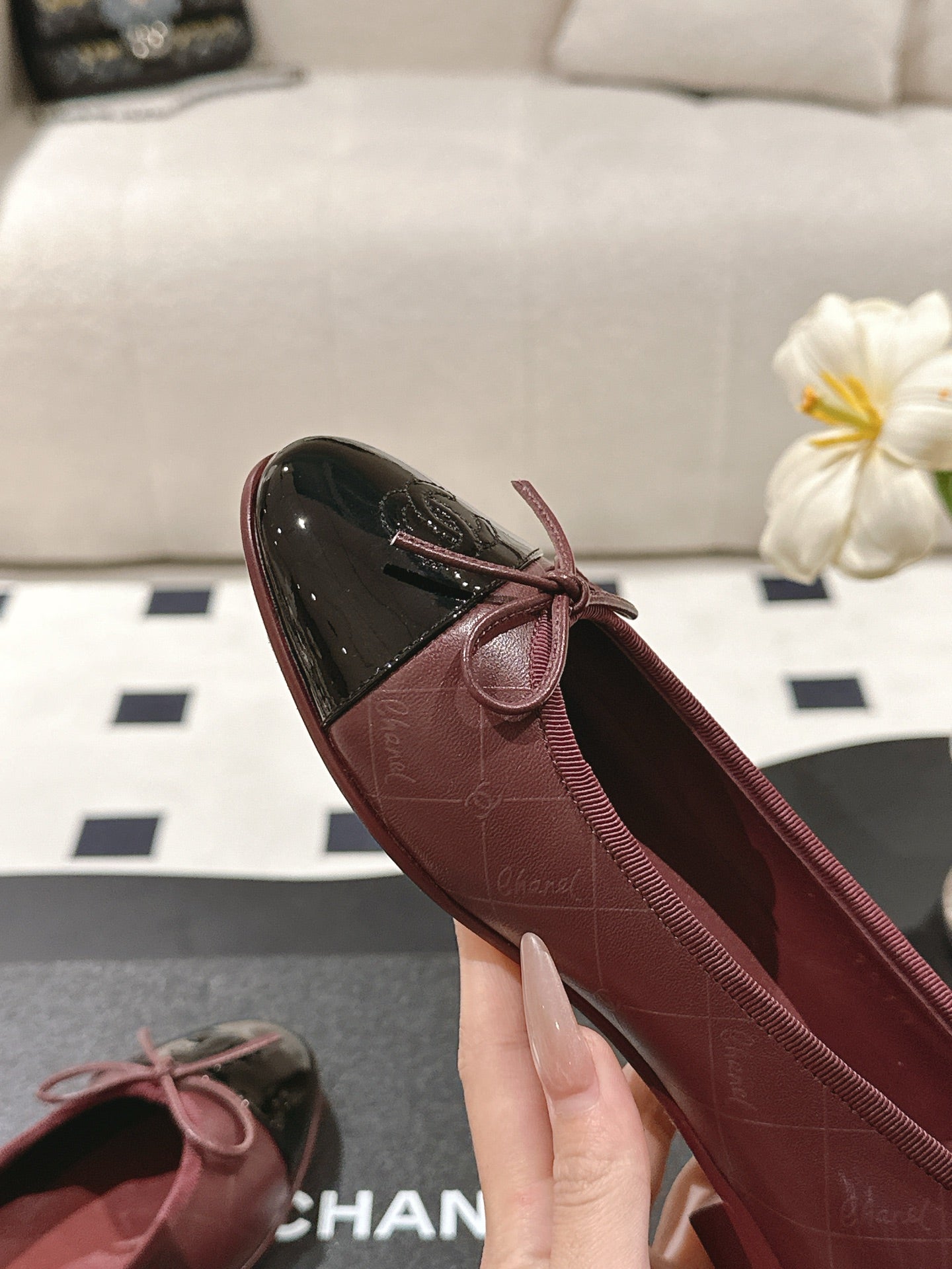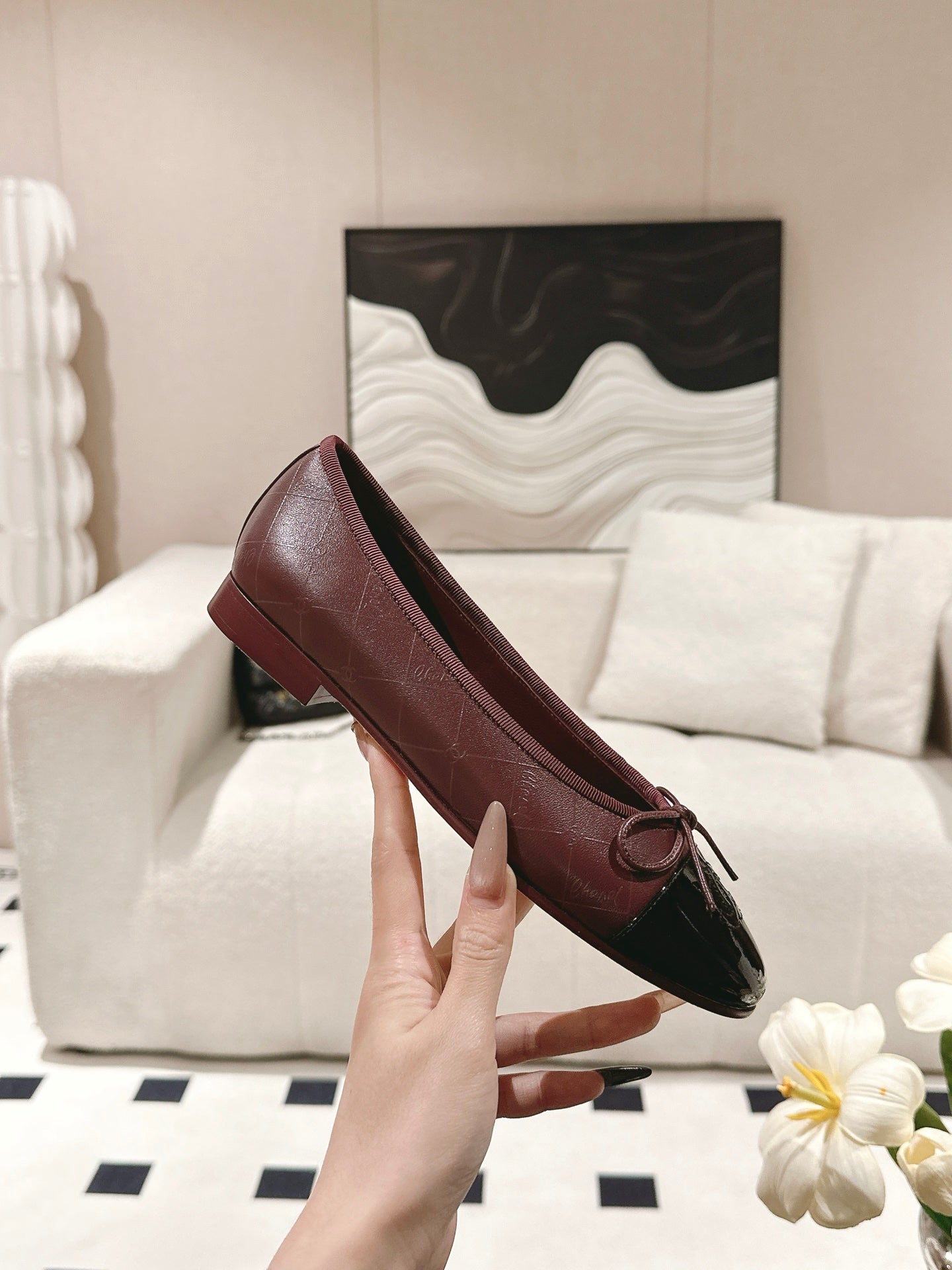 cc 25c ballet flat cross line pattern burgundy lambskin 237483
