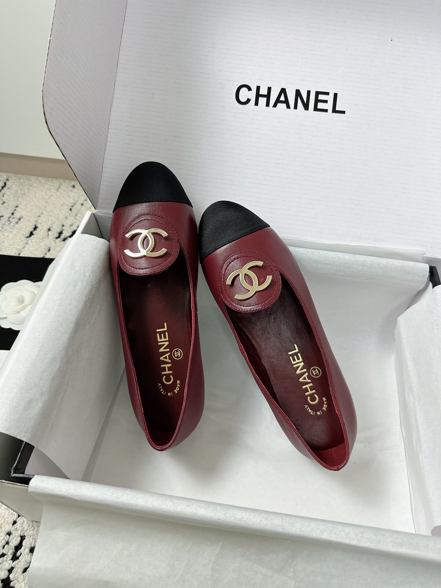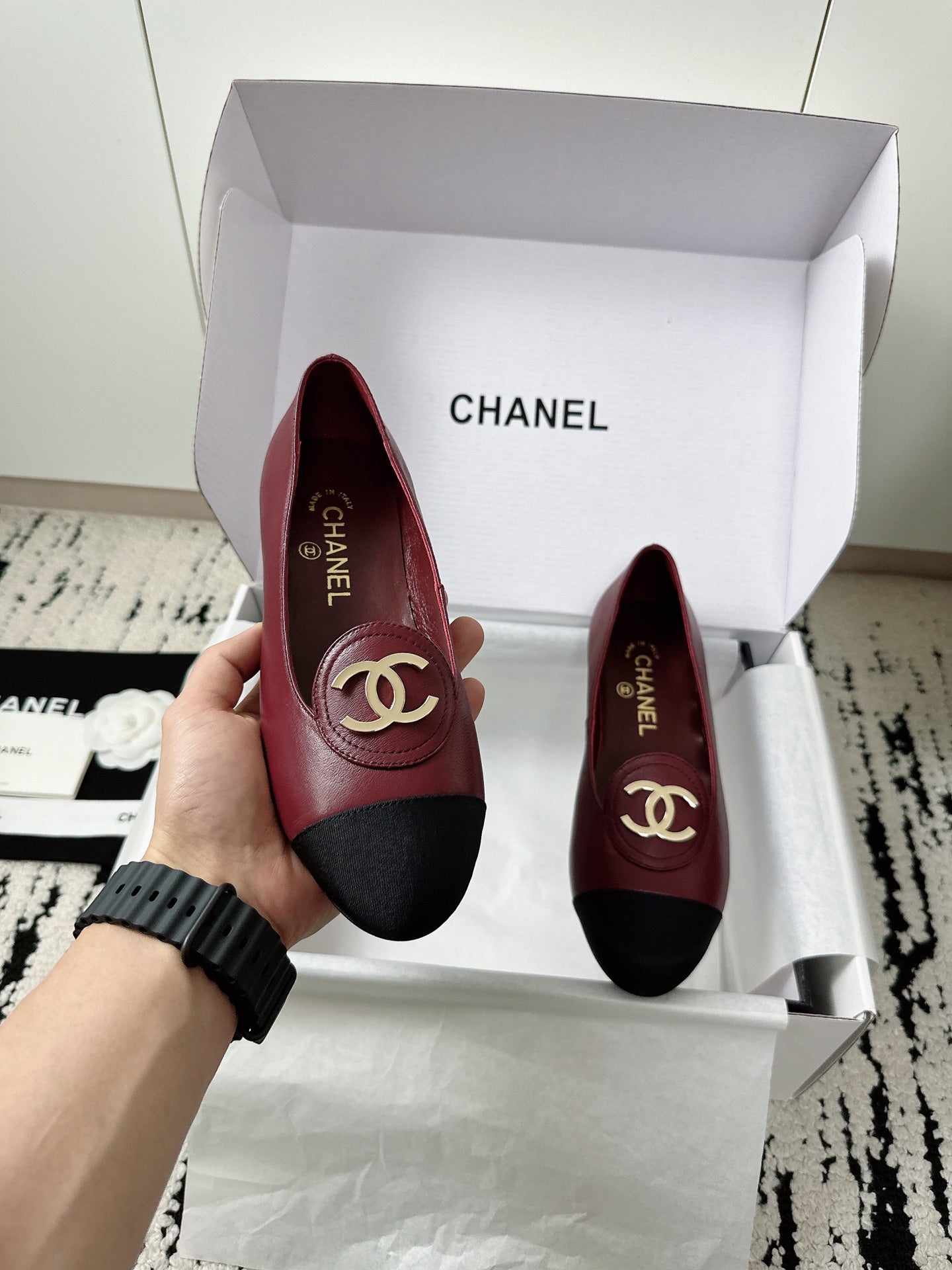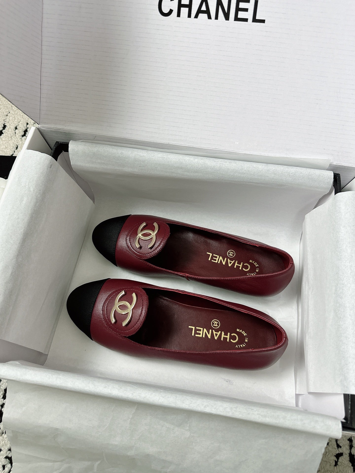 CC SS 2026 Pre Moccasin Black Burgundy Calfskin 628307