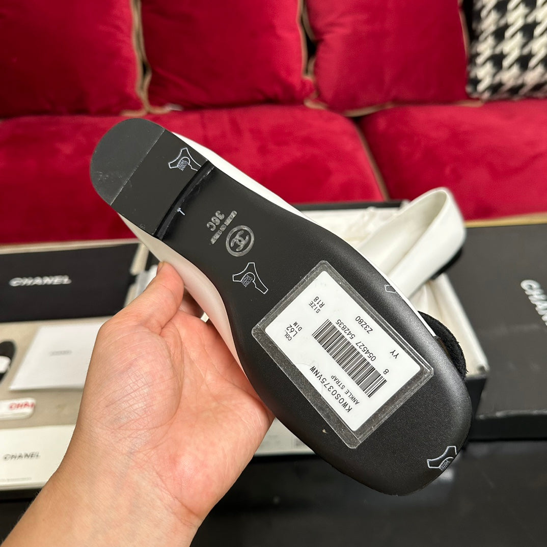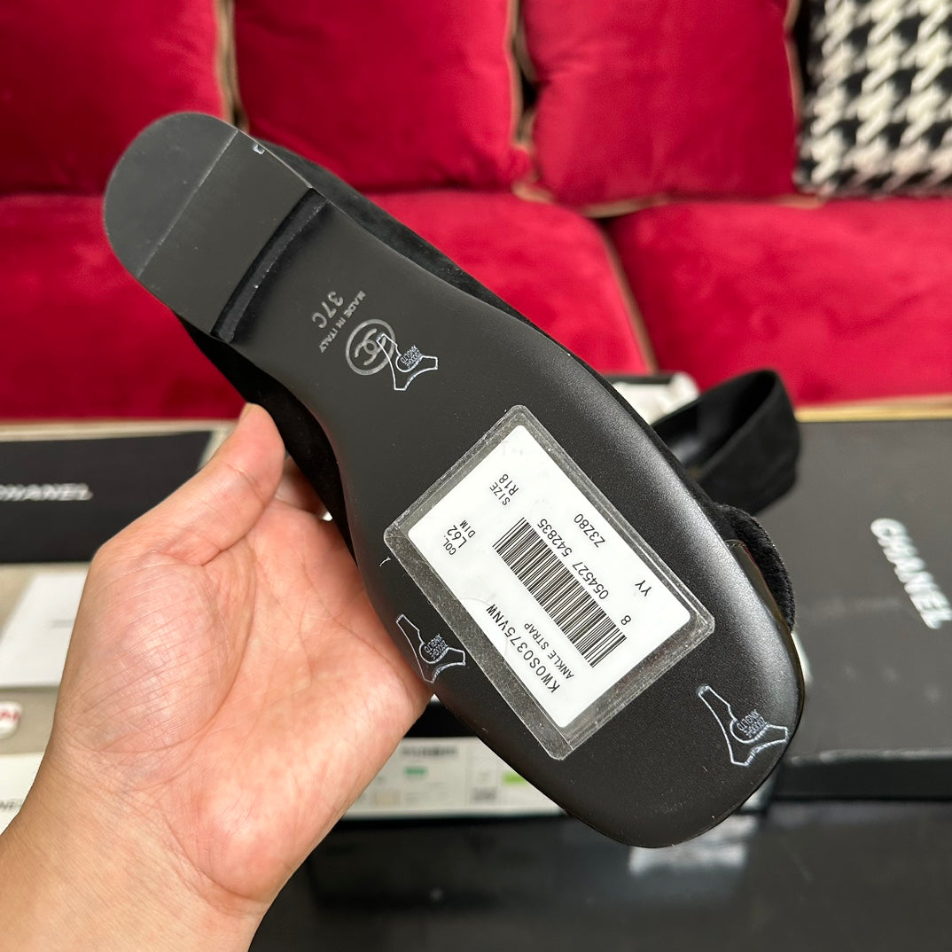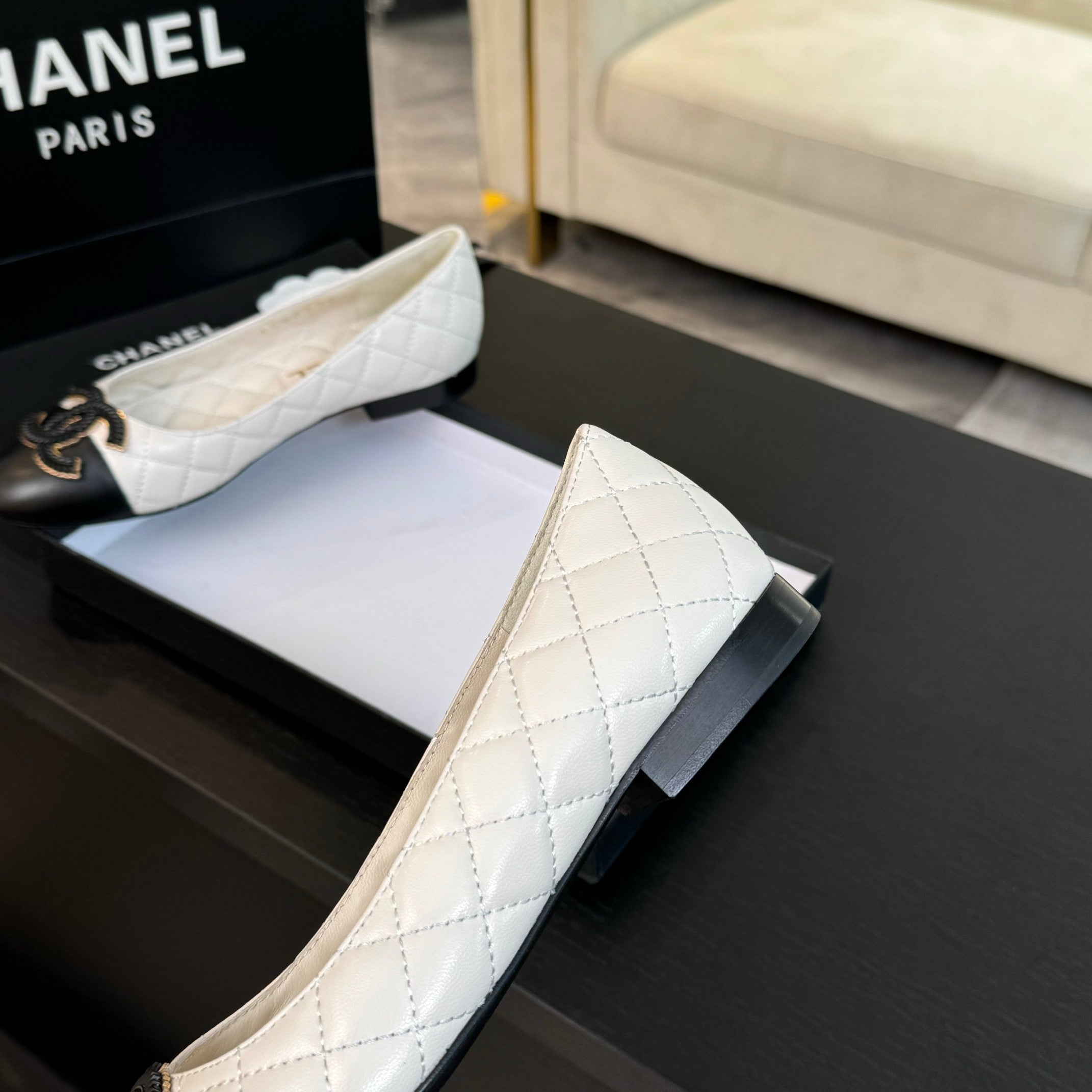 CC BALLET FLATS IN BLACK LAMBSKIN WITH GOLD HARDWARE