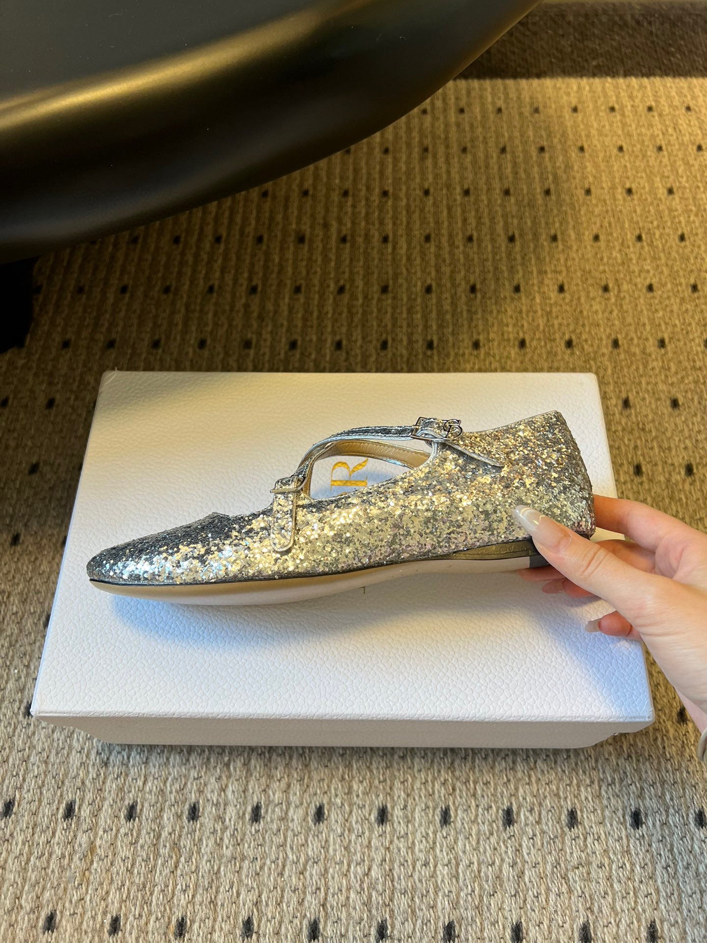CD 26s New Flat Ballet Flats With Cross Straps Sliver Glitter 622217
