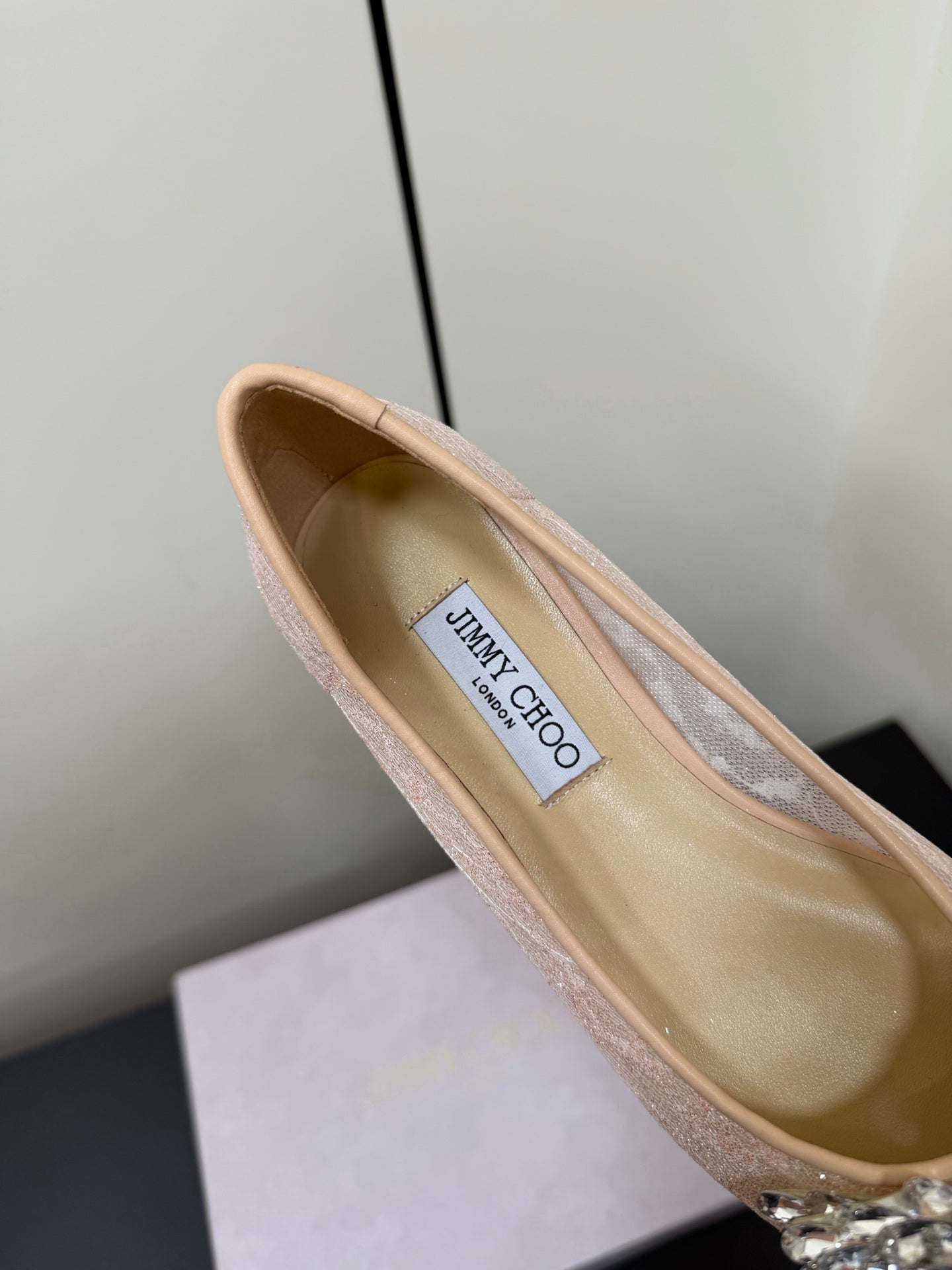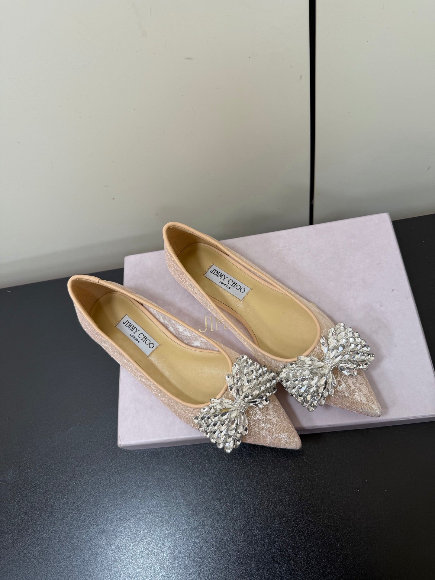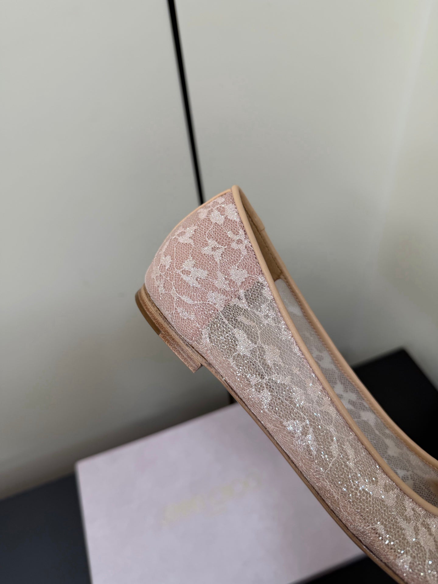 Jimmy 26s Ballet Flats Ivory Beige Lace Sheepskin 605952