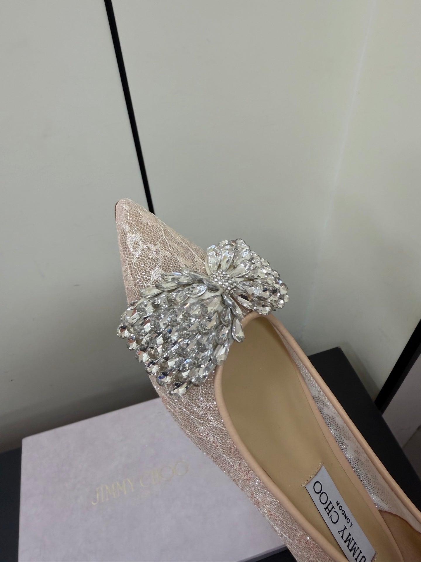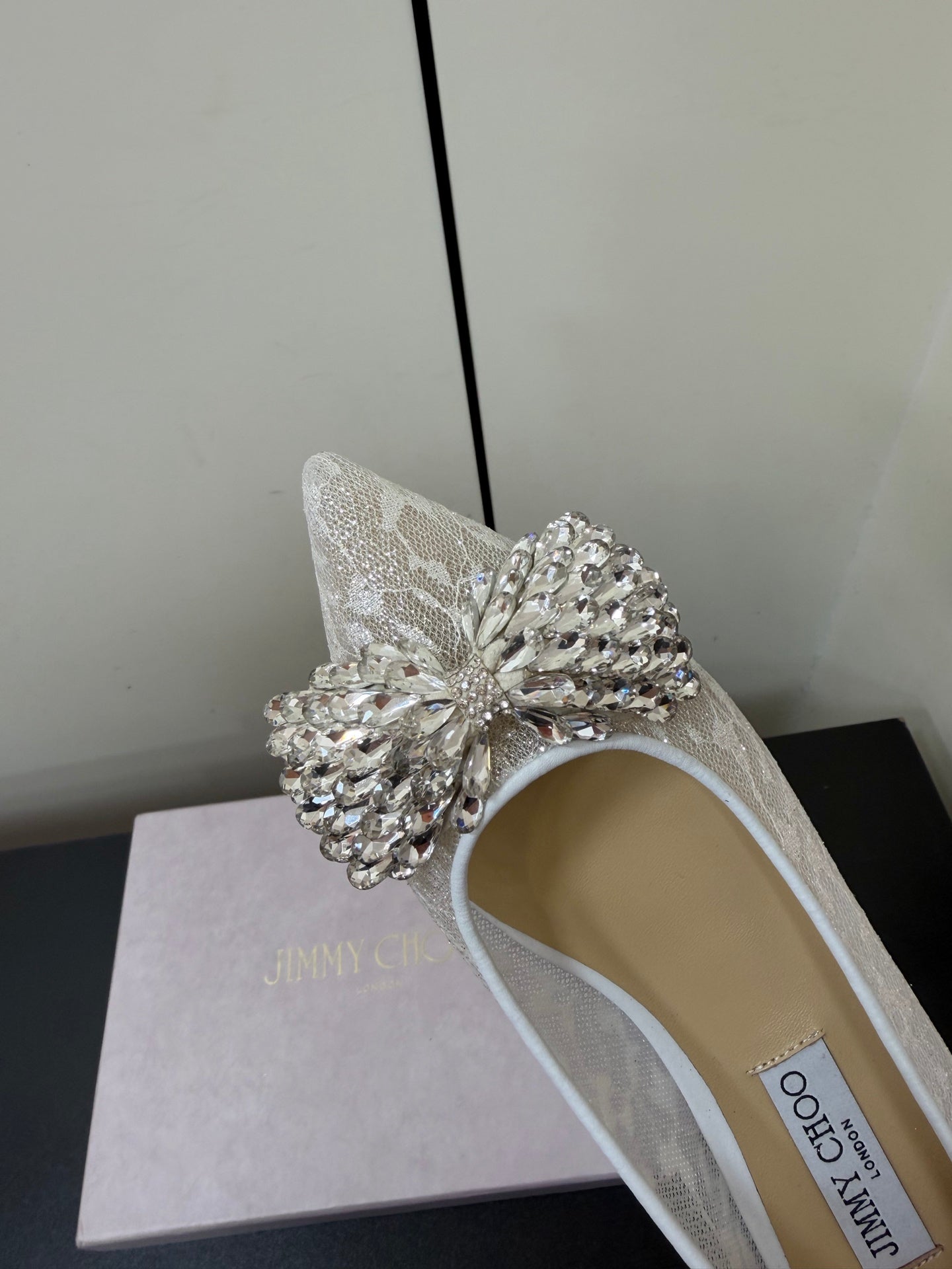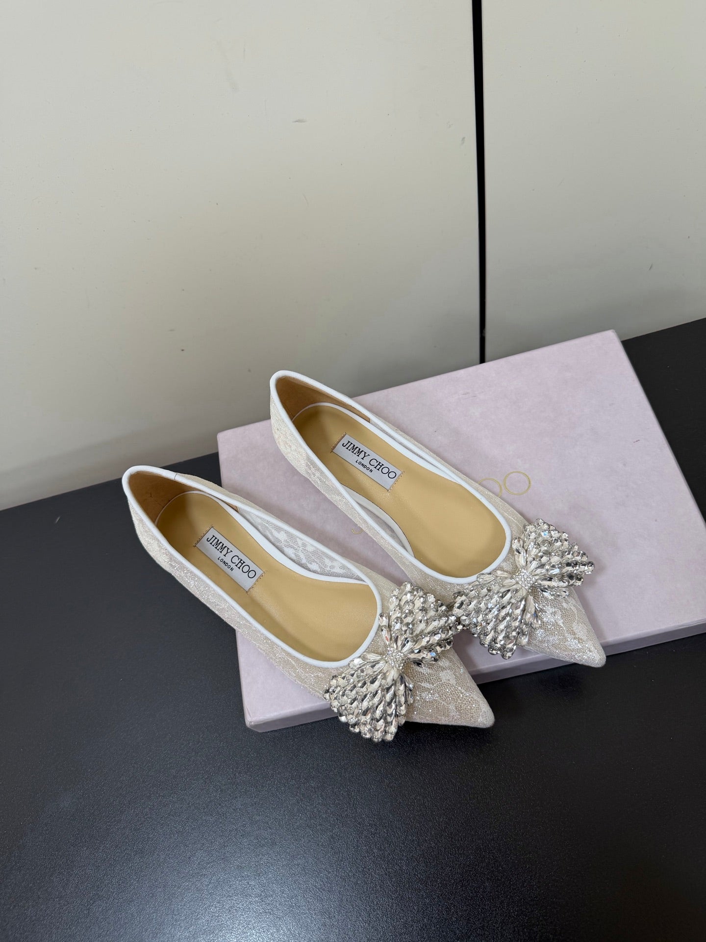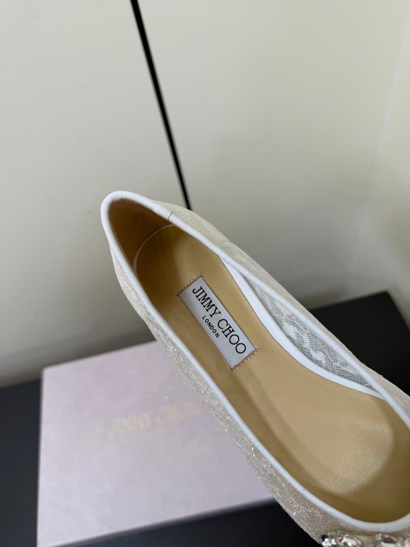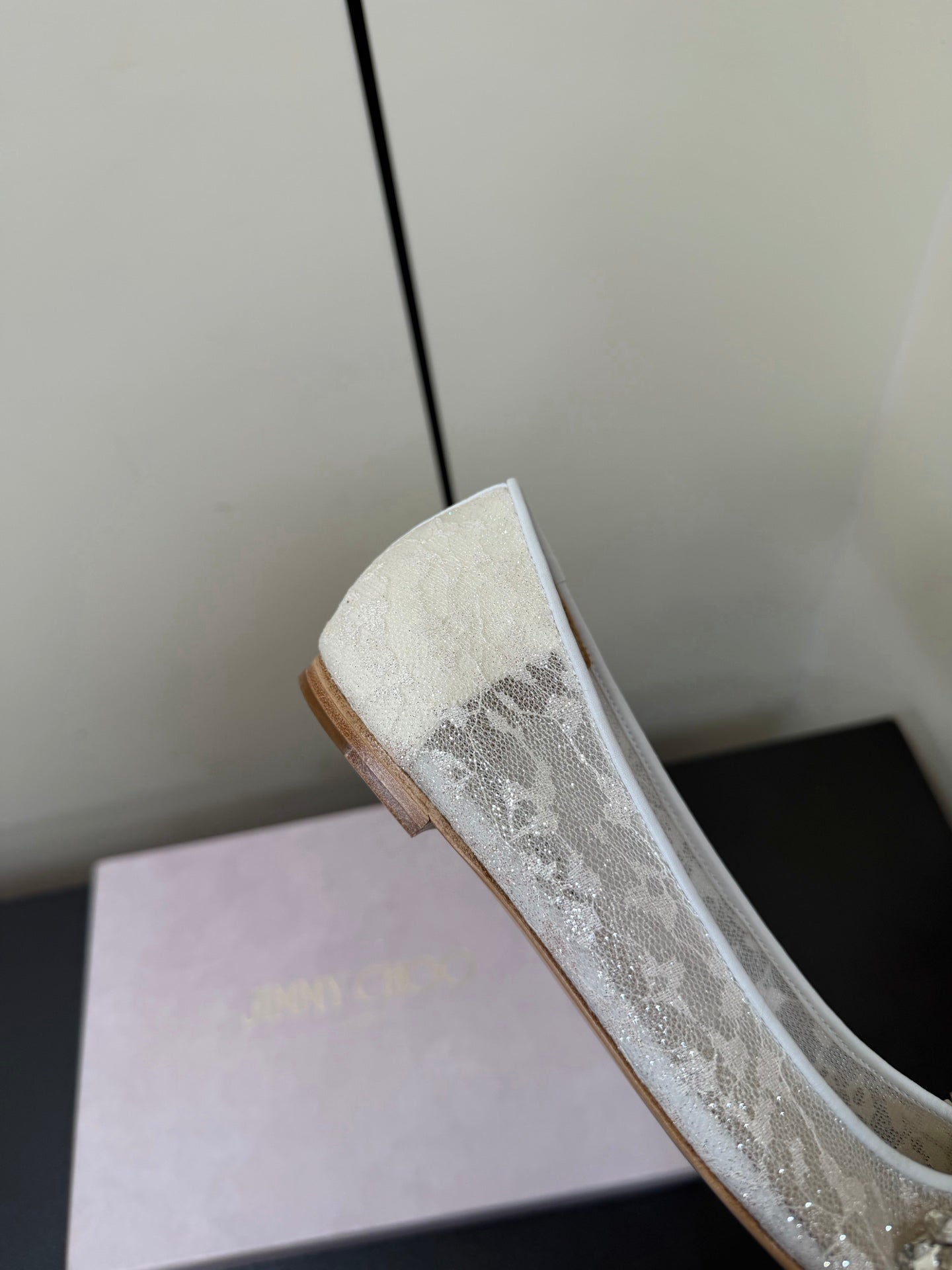 Jimmy 26s Ballet Flats White Beige Lace Sheepskin 605962