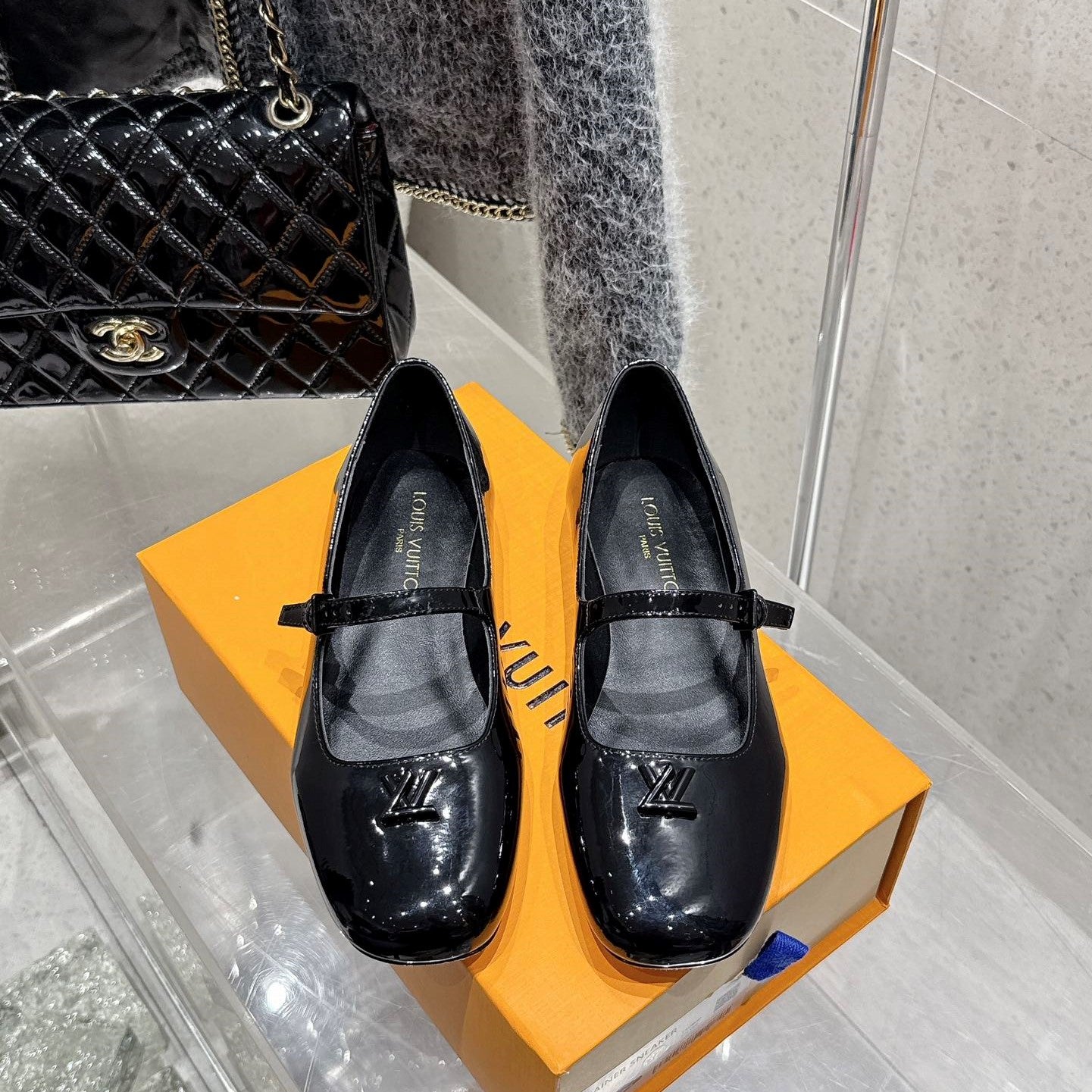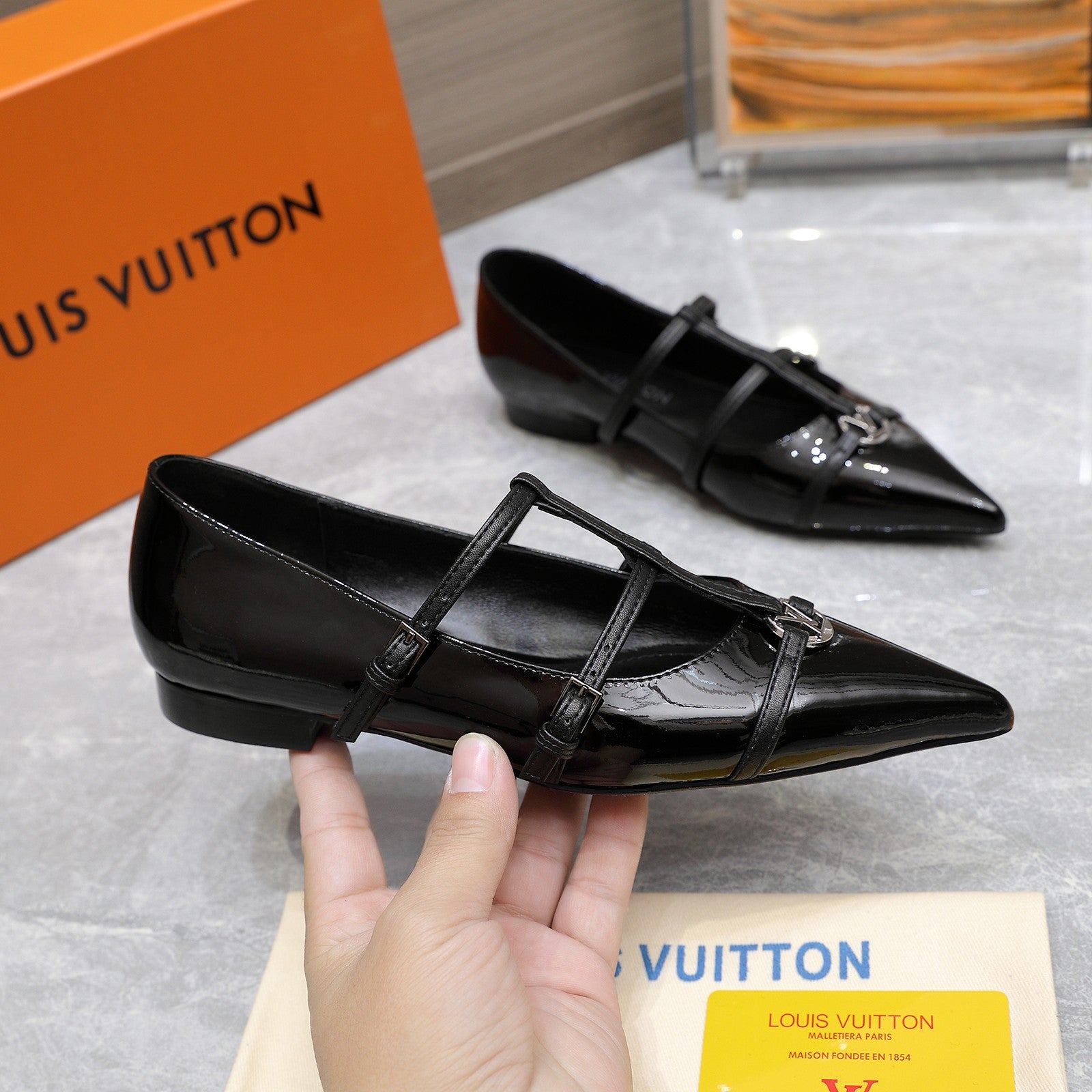 LV 6AM Flat Ballerina Black Patent Leather 601541