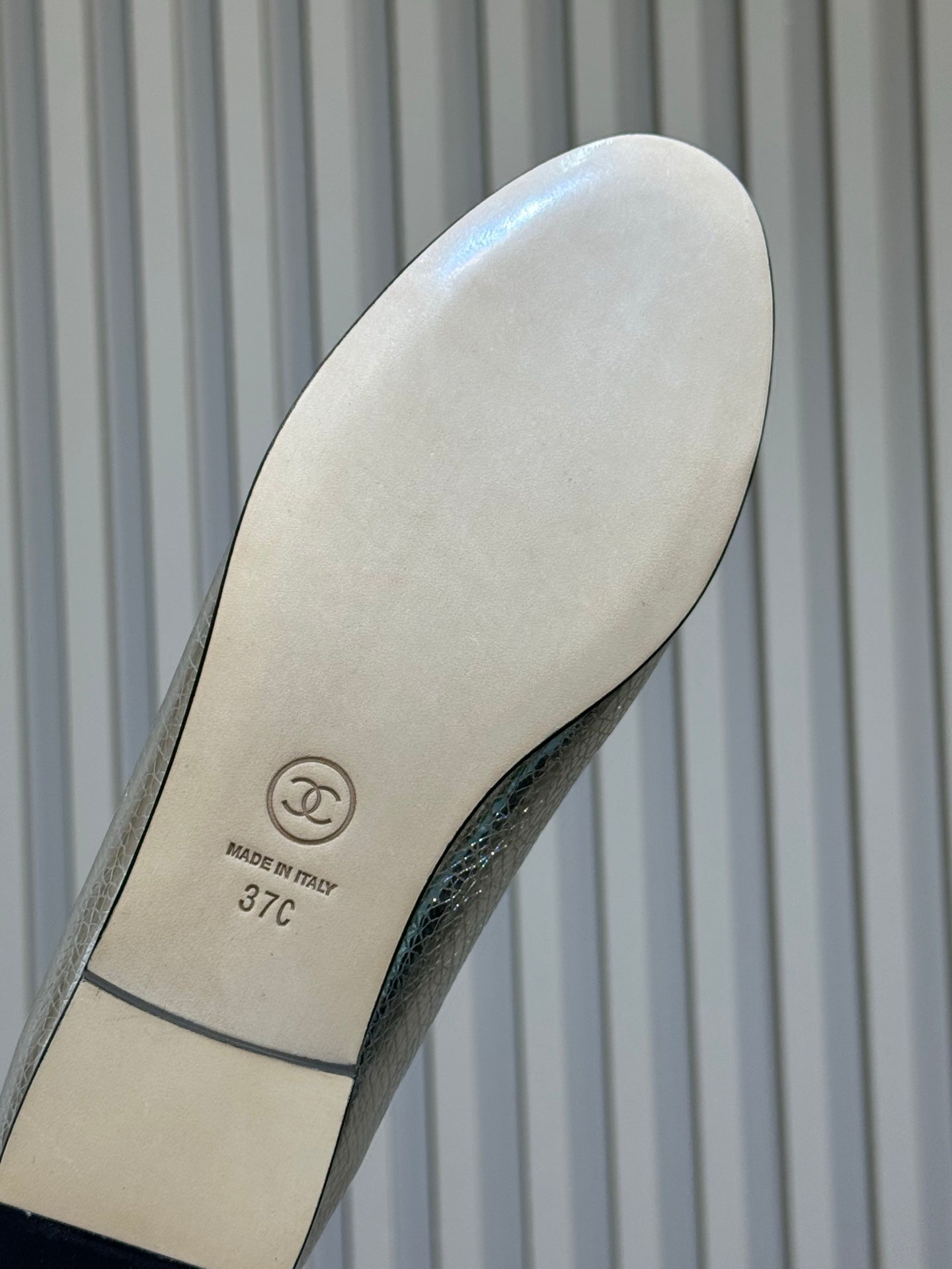 CC 26ss Ballet Flats Black Sliver Leather Fabric 623150