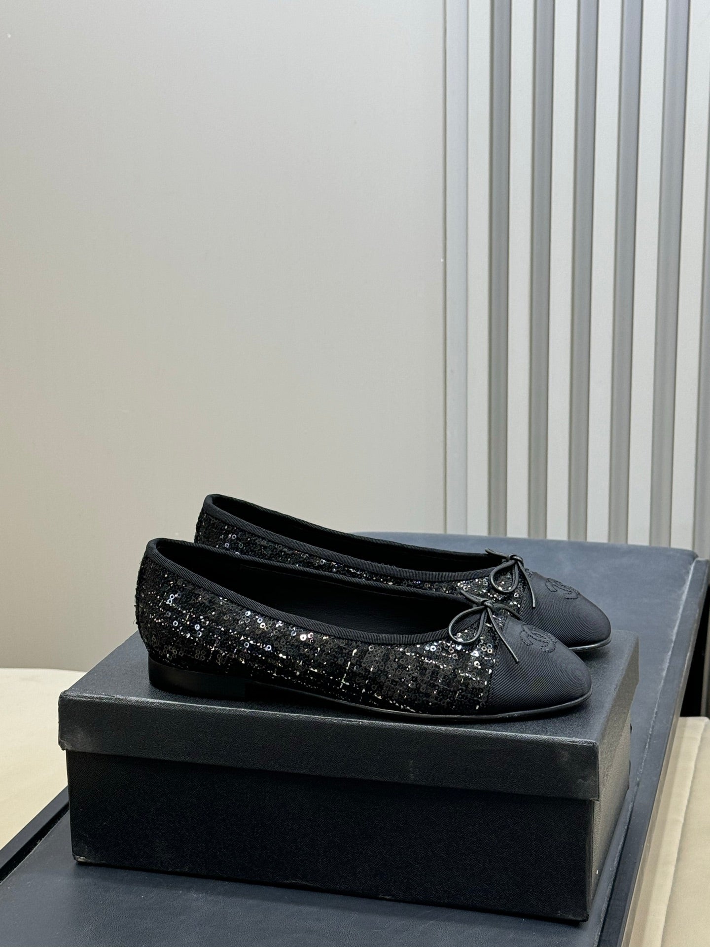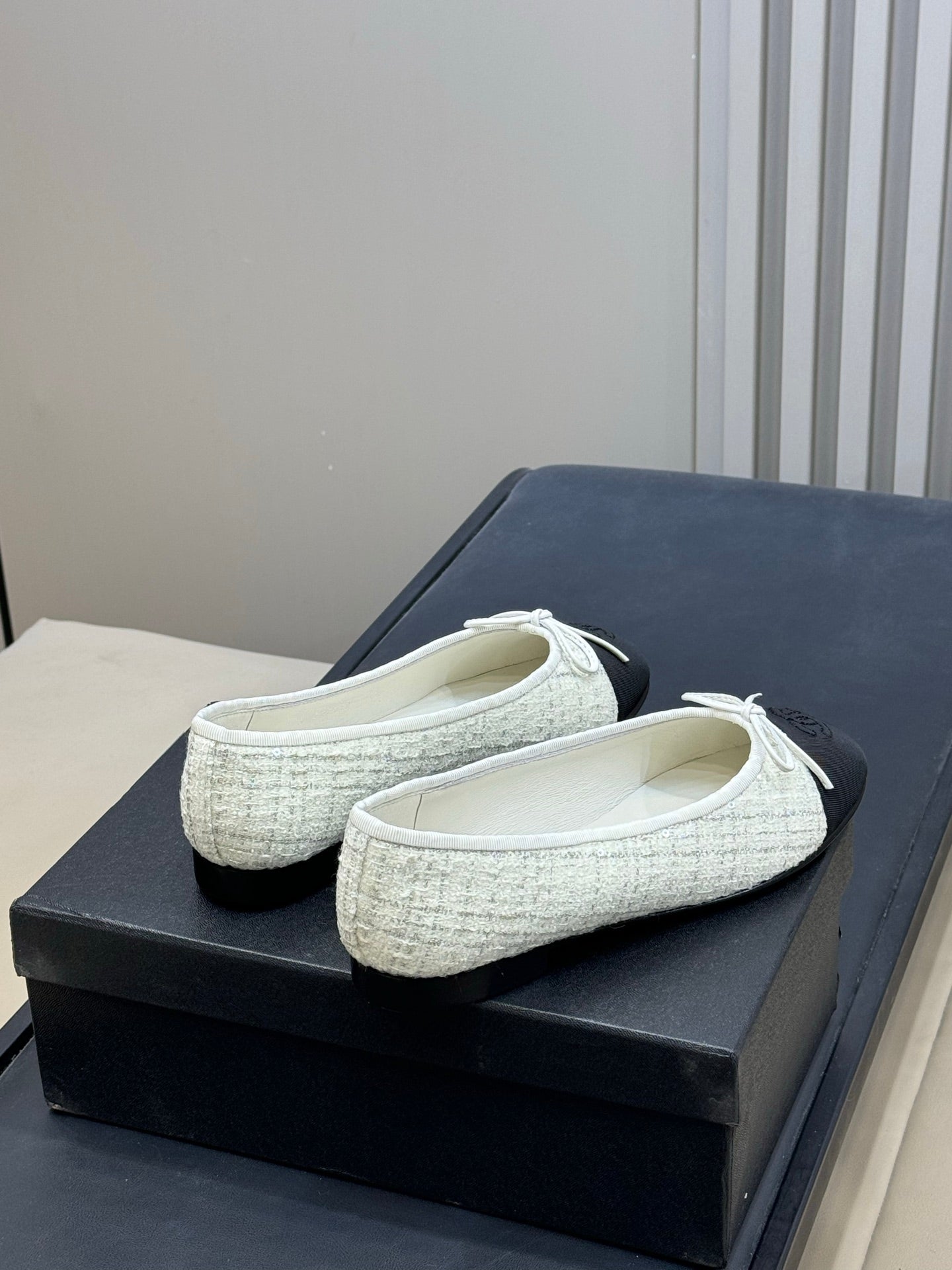 CC 26ss Ballet Flats Black White Tweed Fabric 623152