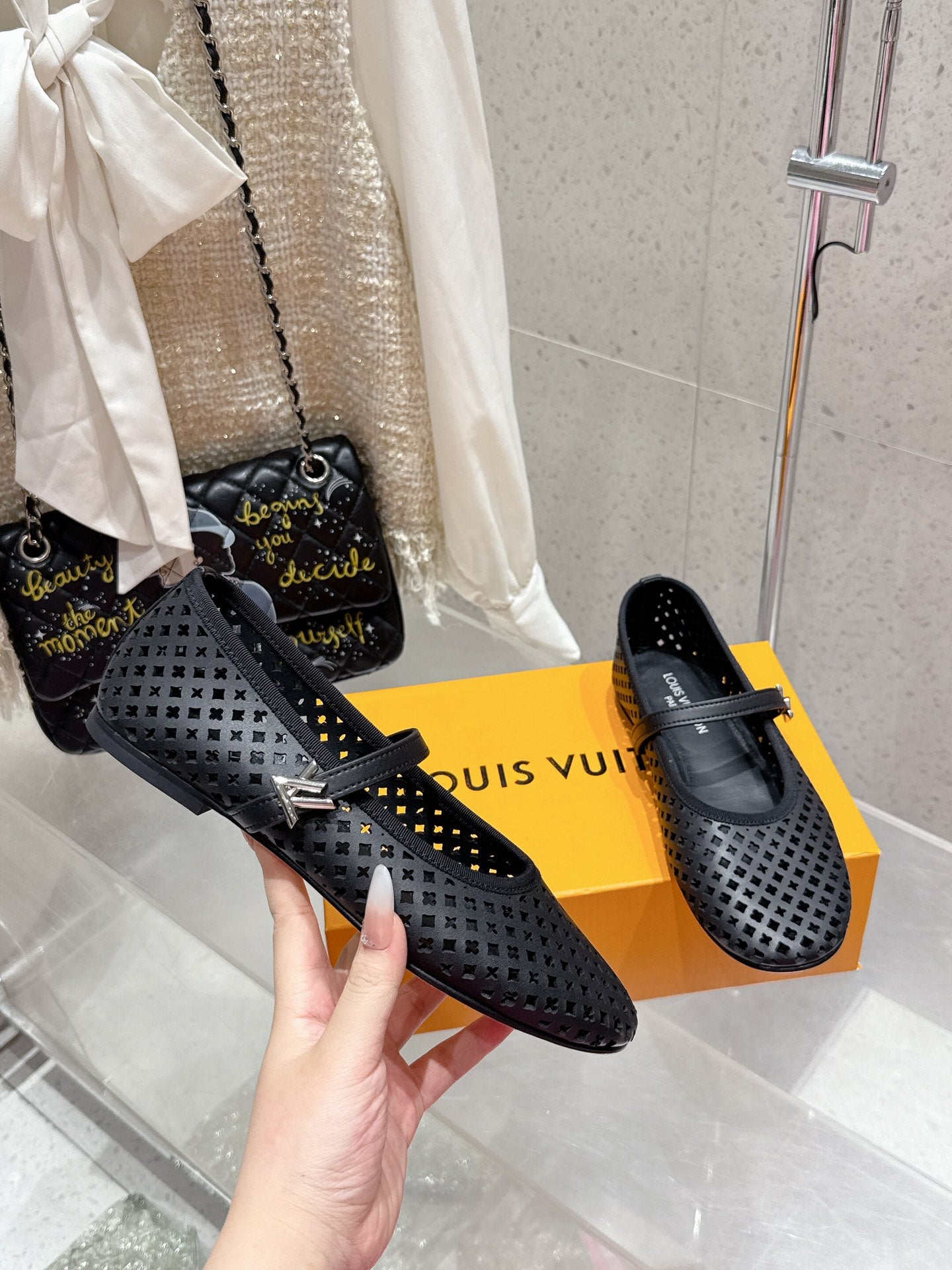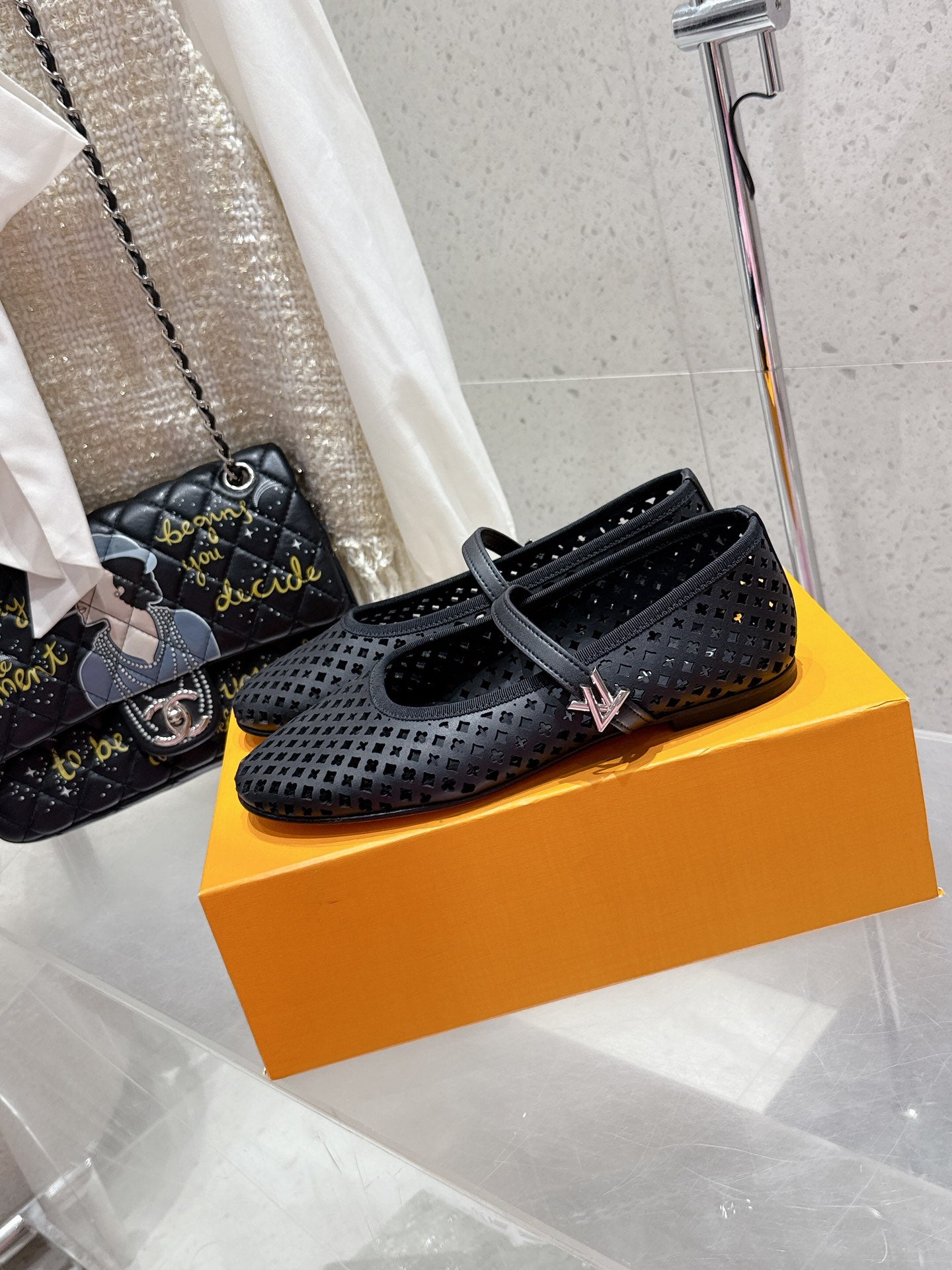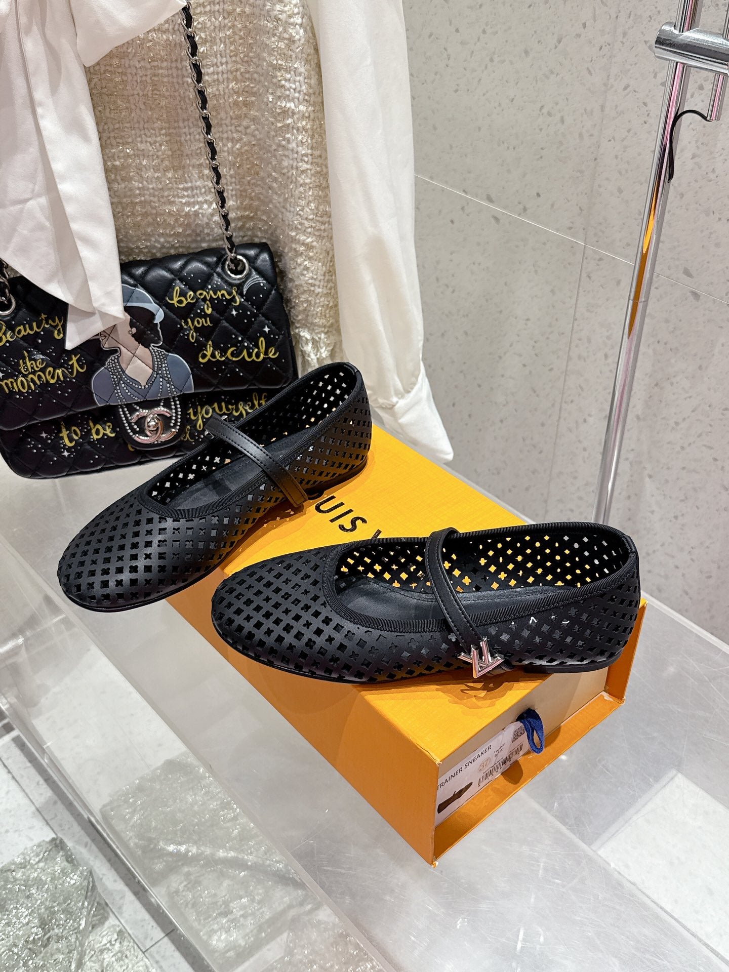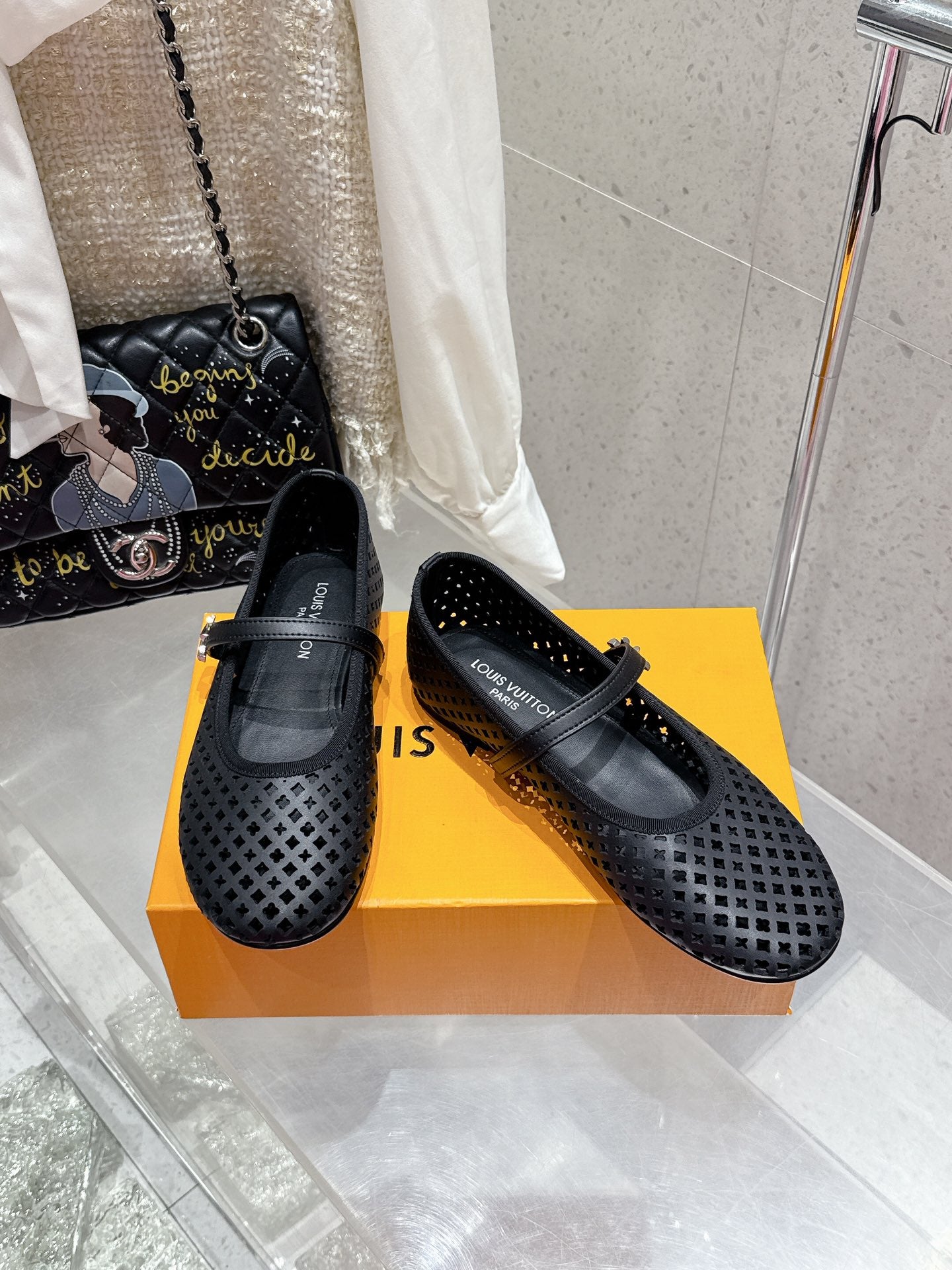LV Romy Flat Ballerina Black Perforated Cowhide 610705