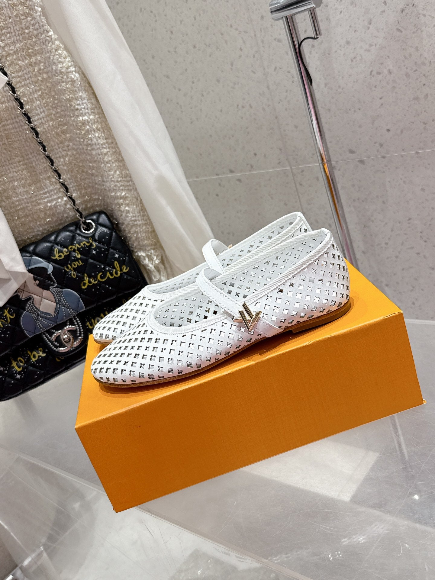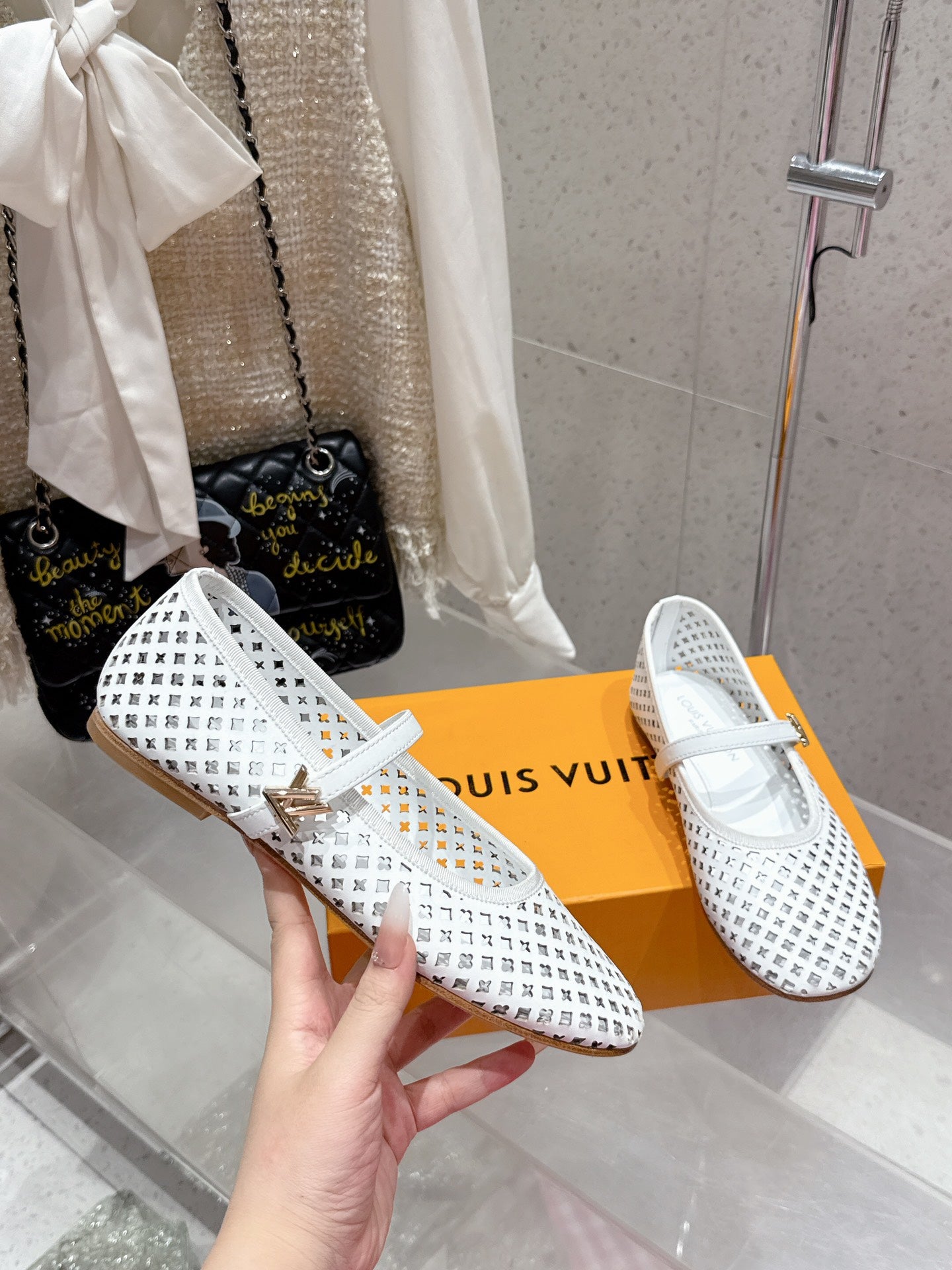 LV Romy Flat Ballerina White Perforated Cowhide 610706