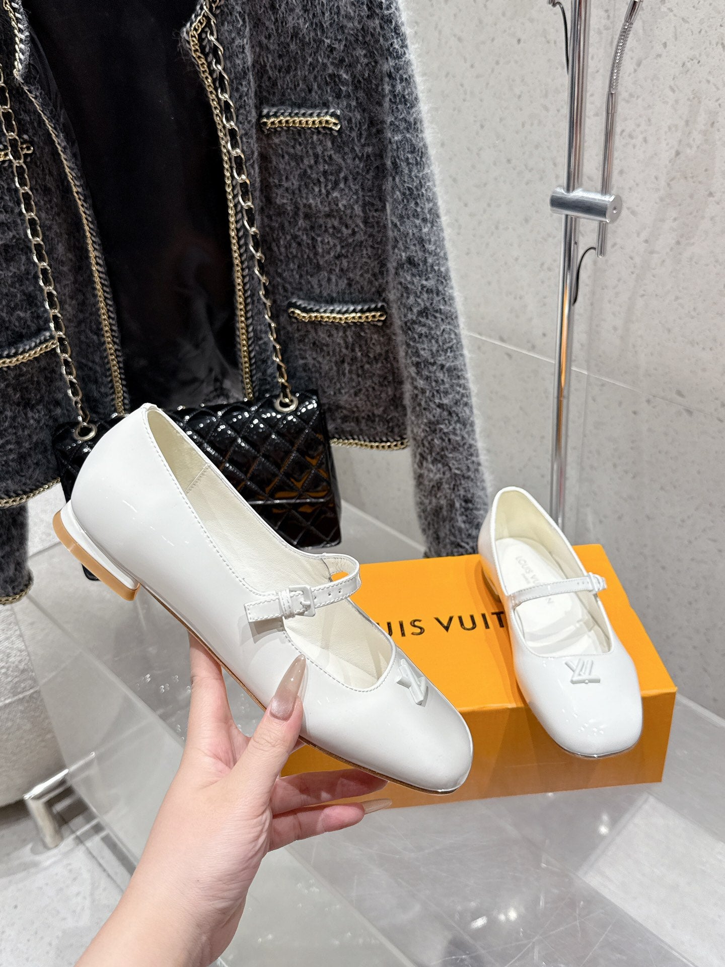 LV 6AM Flat Ballerina White Patent Leather 601539