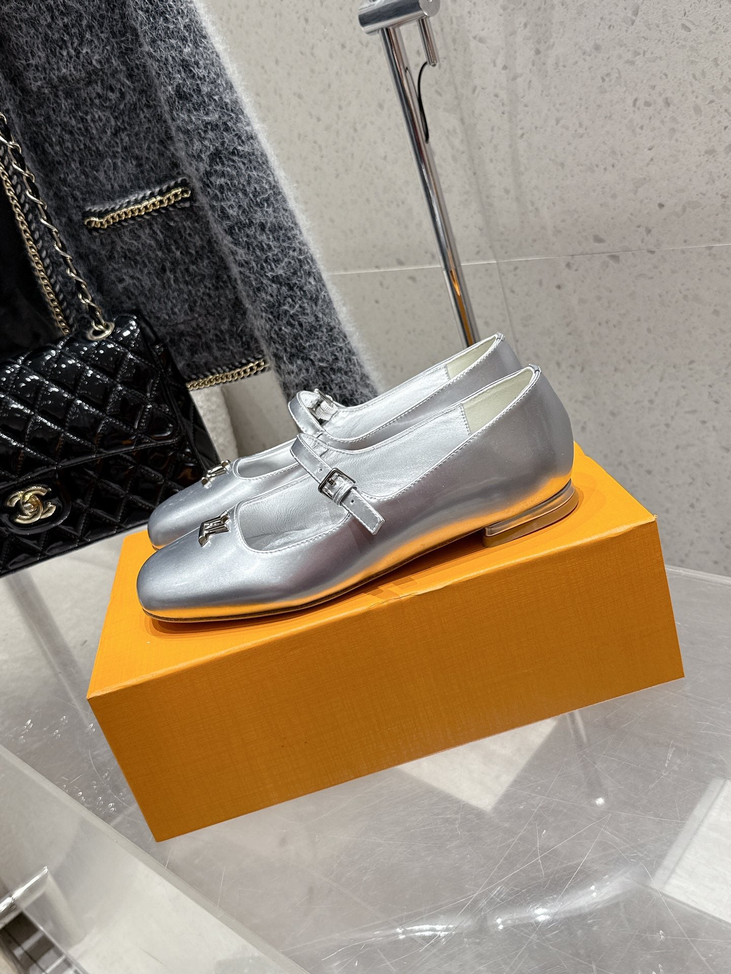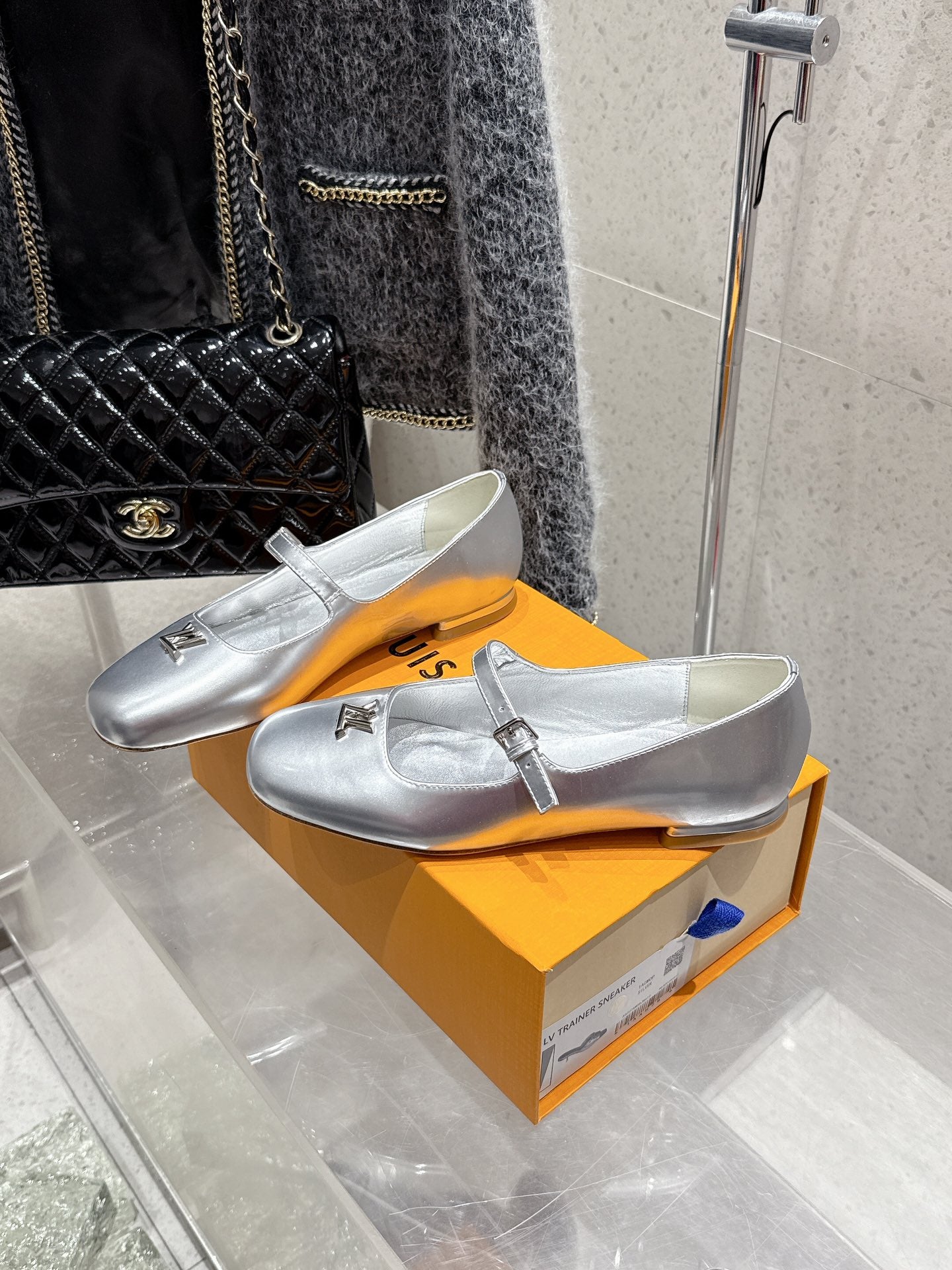 LV Swing Ballet Flat Sliver Metallic Leather 610712