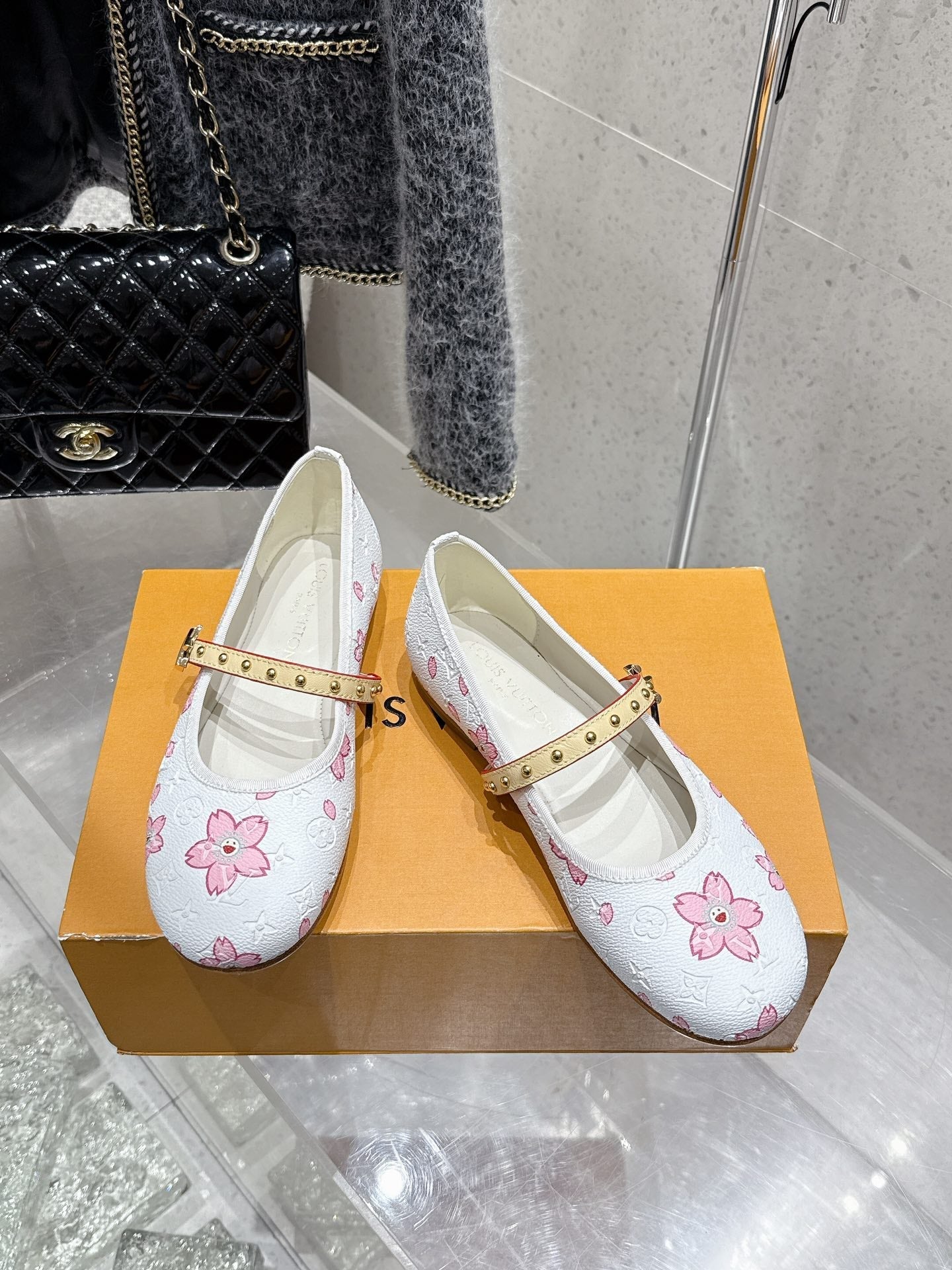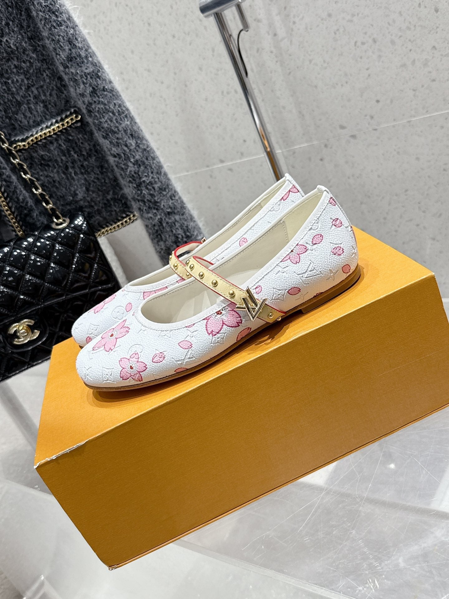 LV 26s Ballet Flats White Pink Monogram Leather 610841
