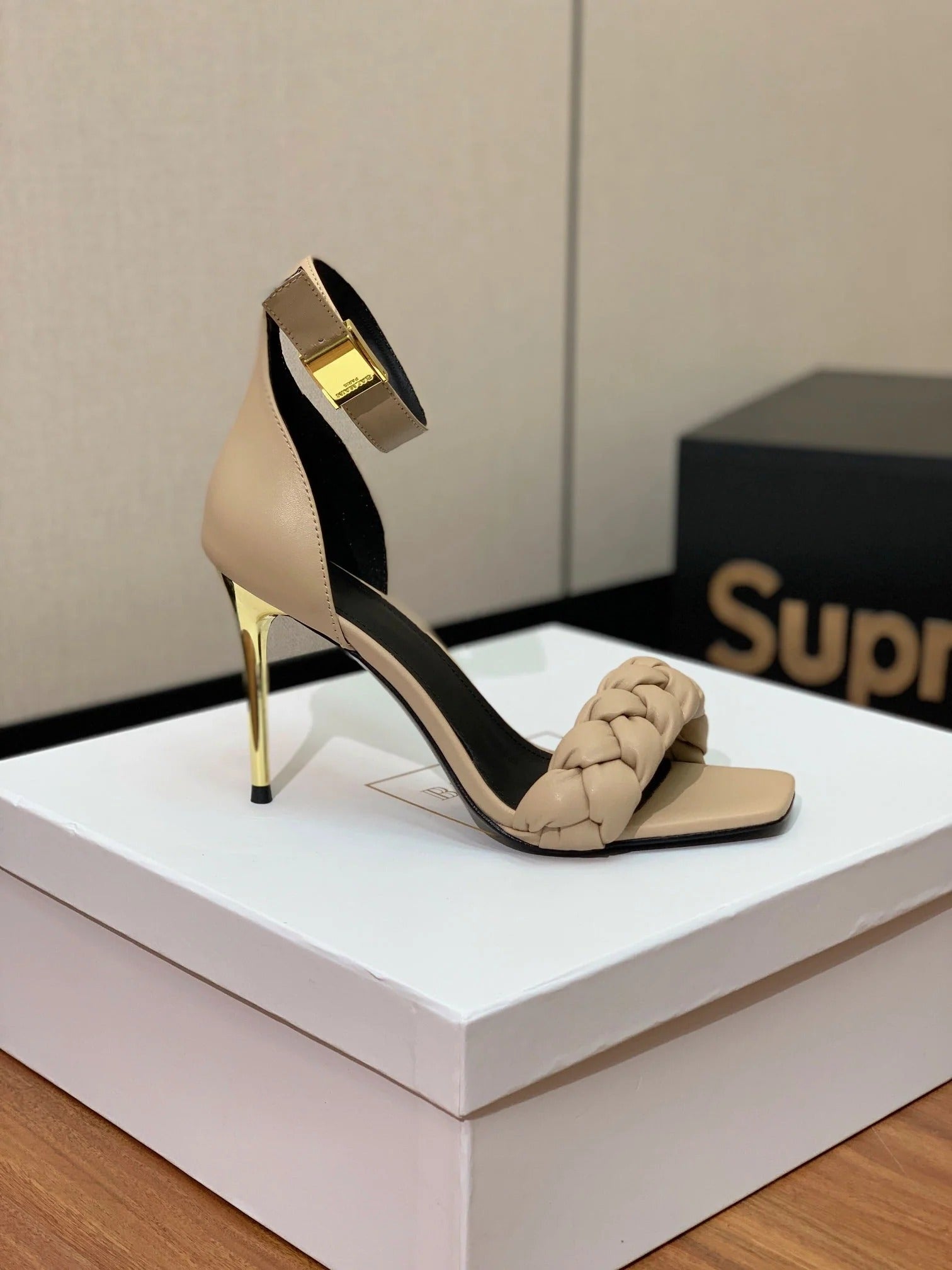 BALMAIN 25S ANKLE STRAP HIGH HEEL 95MM IN BEIGE GRAY CALFSKIN