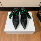 BALMAIN 25S BAKARI MULE WITH GREEN POLKA DOTS ON BLACK STRAP 95MM IN BLACK CALFSKIN