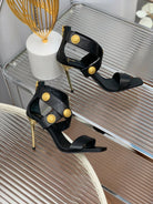 BALMAIN 25S CROSSOVER STRAP HIGH HEELS 95MM IN BLACK CALFSKIN