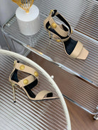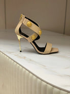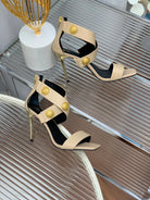 BALMAIN 25S CROSSOVER STRAP HIGH HEELS 95MM IN LIGHT BROWN CALFSKIN