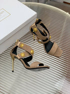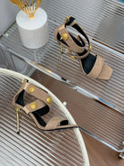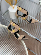 BALMAIN 25S CROSSOVER STRAP HIGH HEELS 95MM IN LIGHT BROWN SUEDE