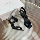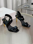 BALMAIN 25S HIGH HEEL SANDALS 95MM IN BLACK GLOSSY CALFSKIN