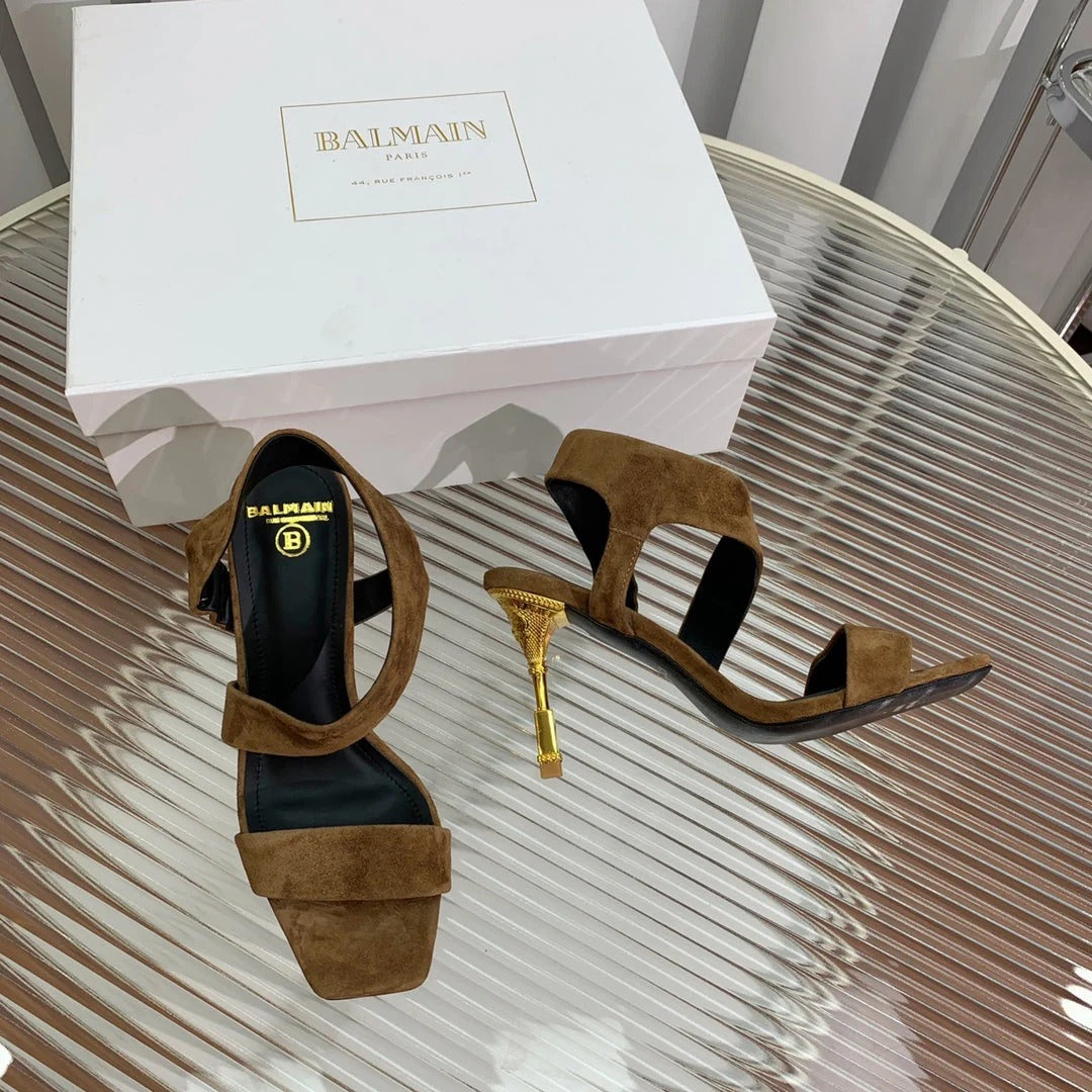 BALMAIN 25S HIGH HEEL SANDALS 95MM IN BROWN SUEDE