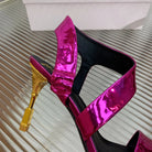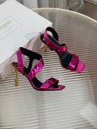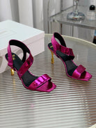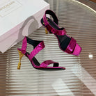 BALMAIN 25S HIGH HEEL SANDALS 95MM IN MAGENTA GLOSSY CALFSKIN