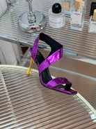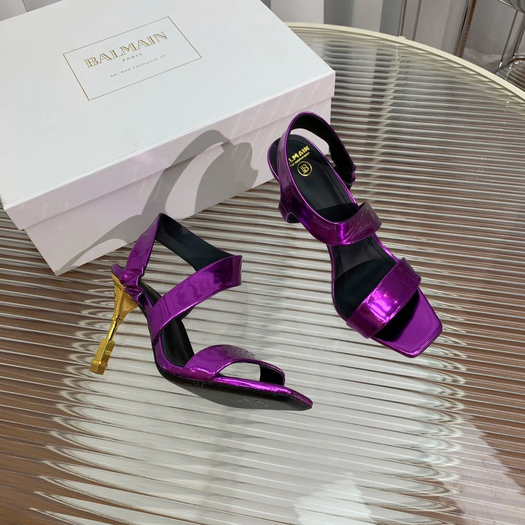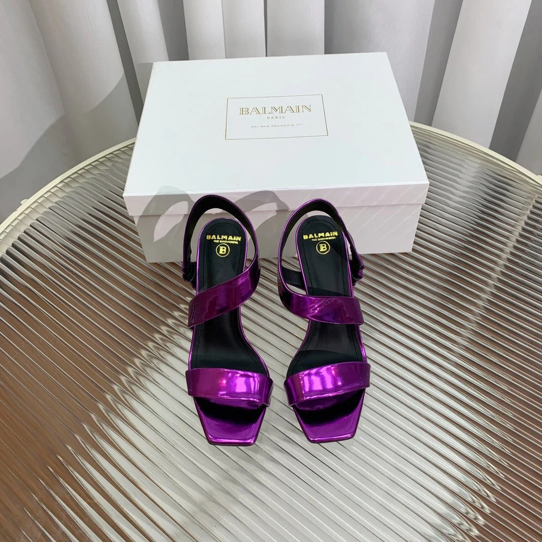 BALMAIN 25S HIGH HEEL SANDALS 95MM IN ROYAL PURPLE GLOSSY CALFSKIN