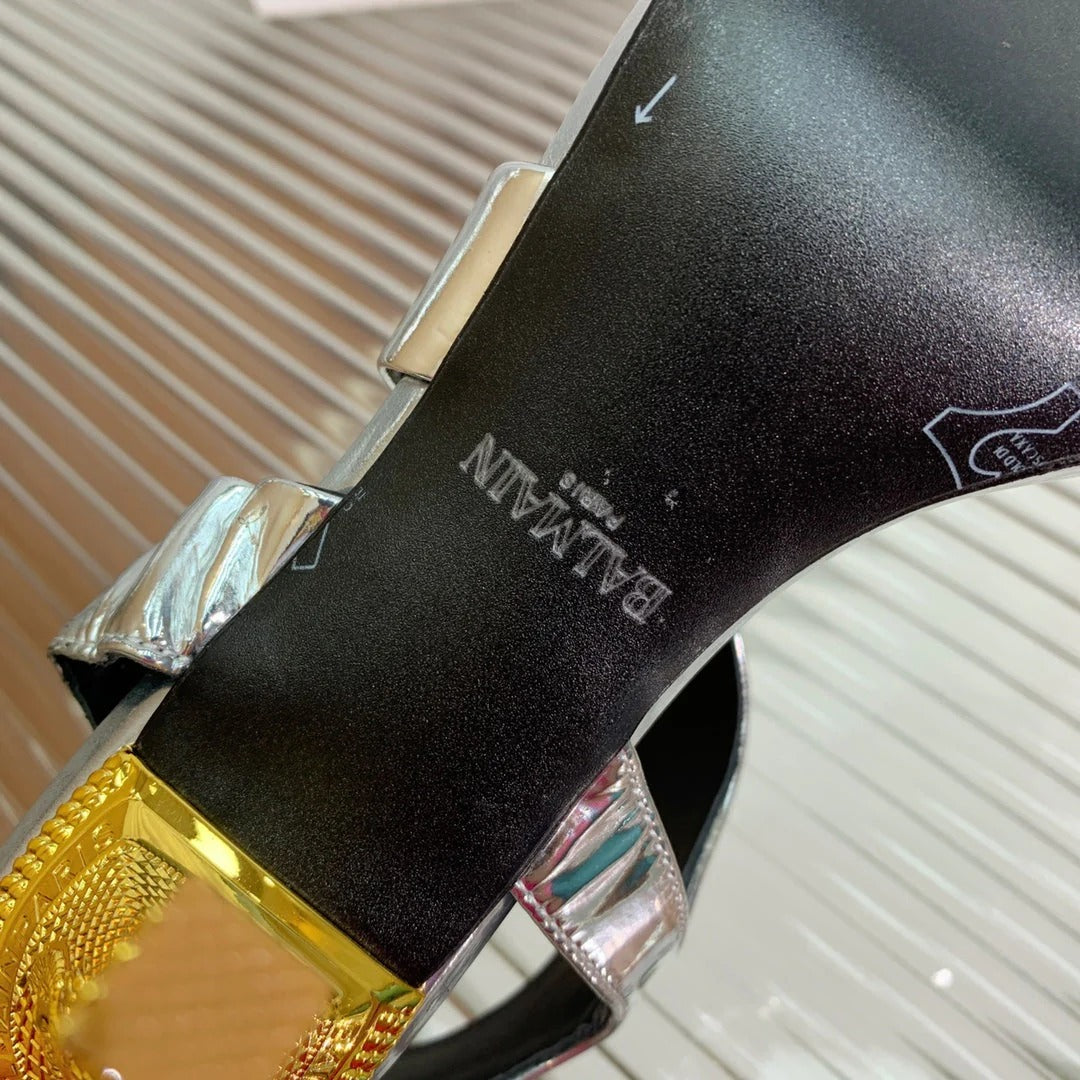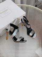 BALMAIN 25S HIGH HEEL SANDALS 95MM IN SILVER GLOSSY CALFSKIN